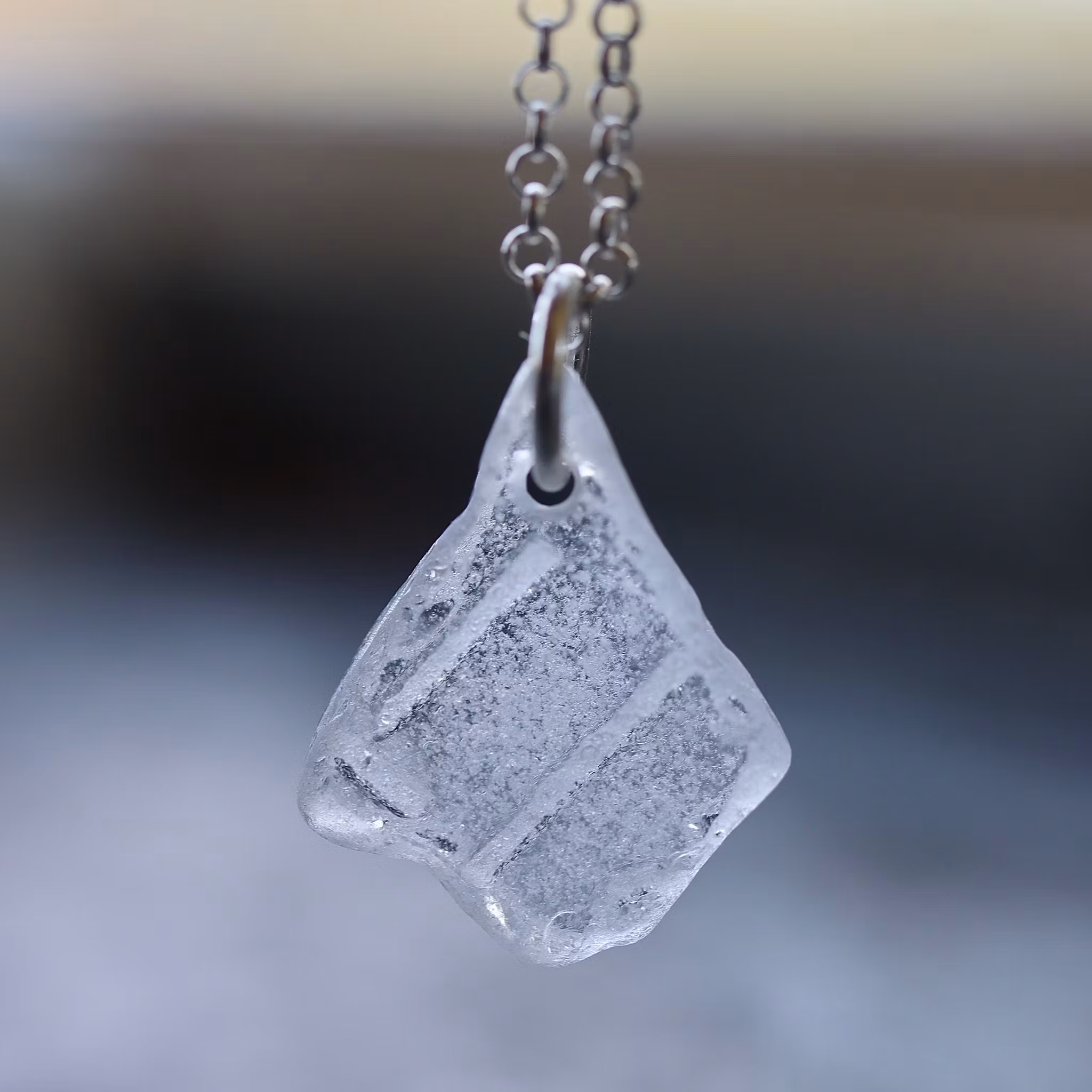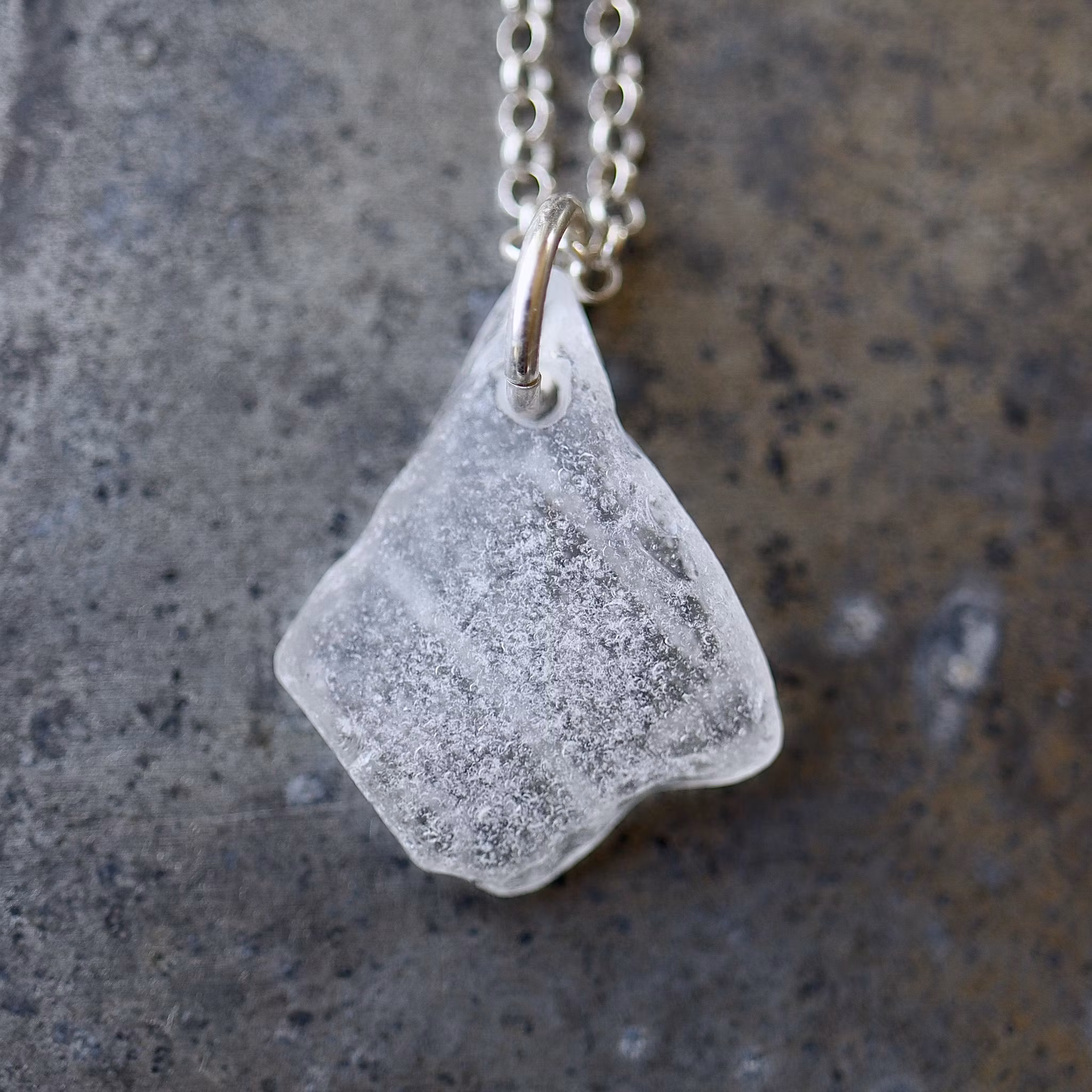 Havsglaset är samlat längs Skånes stränder och helt obearbetat, endast varsamt tvättat och borrat.