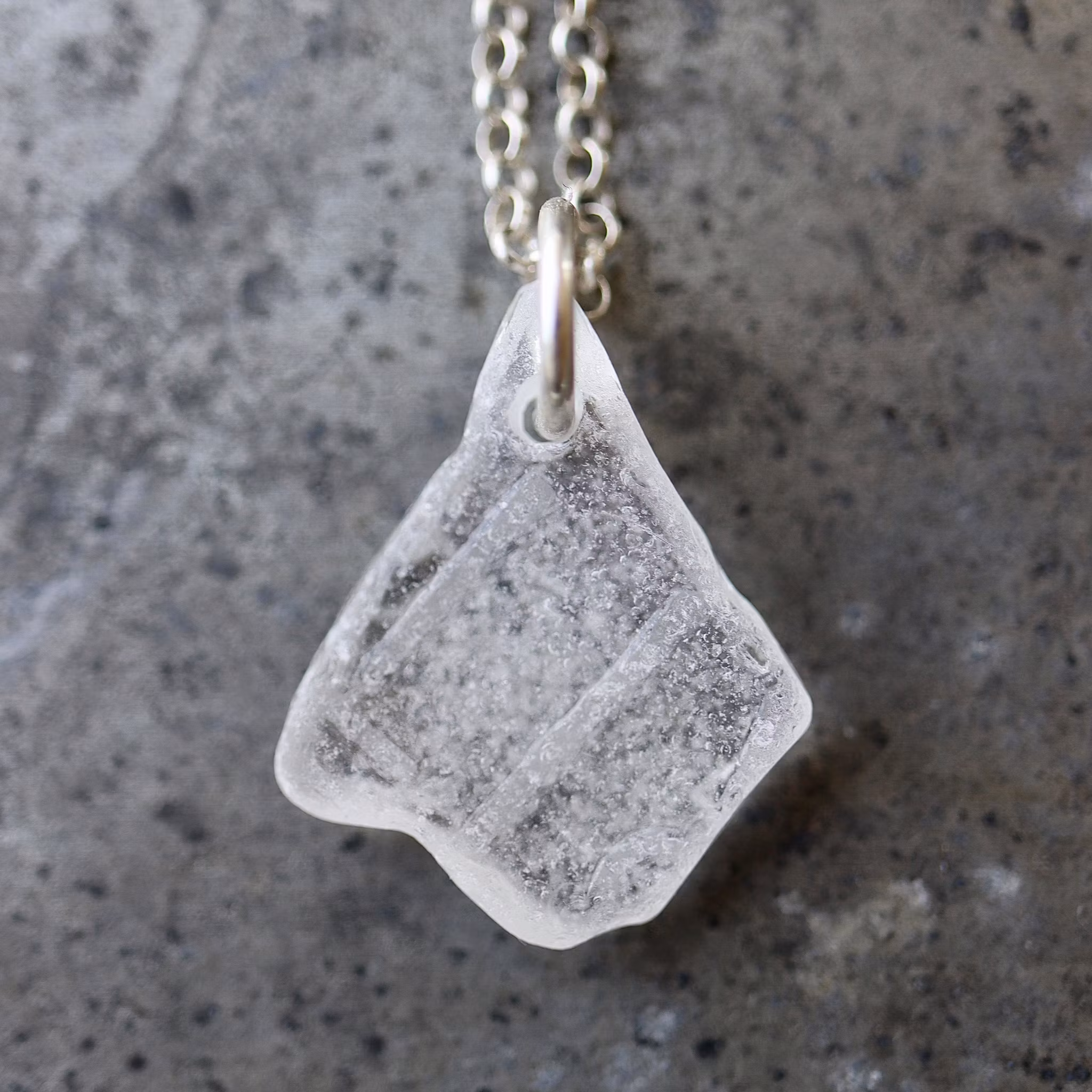 Halskedja av äkta silver, välj mellan 45, 50 och 60 cm, i låset sitter en plexitag "Havsglas" tillverkad i Sverige.