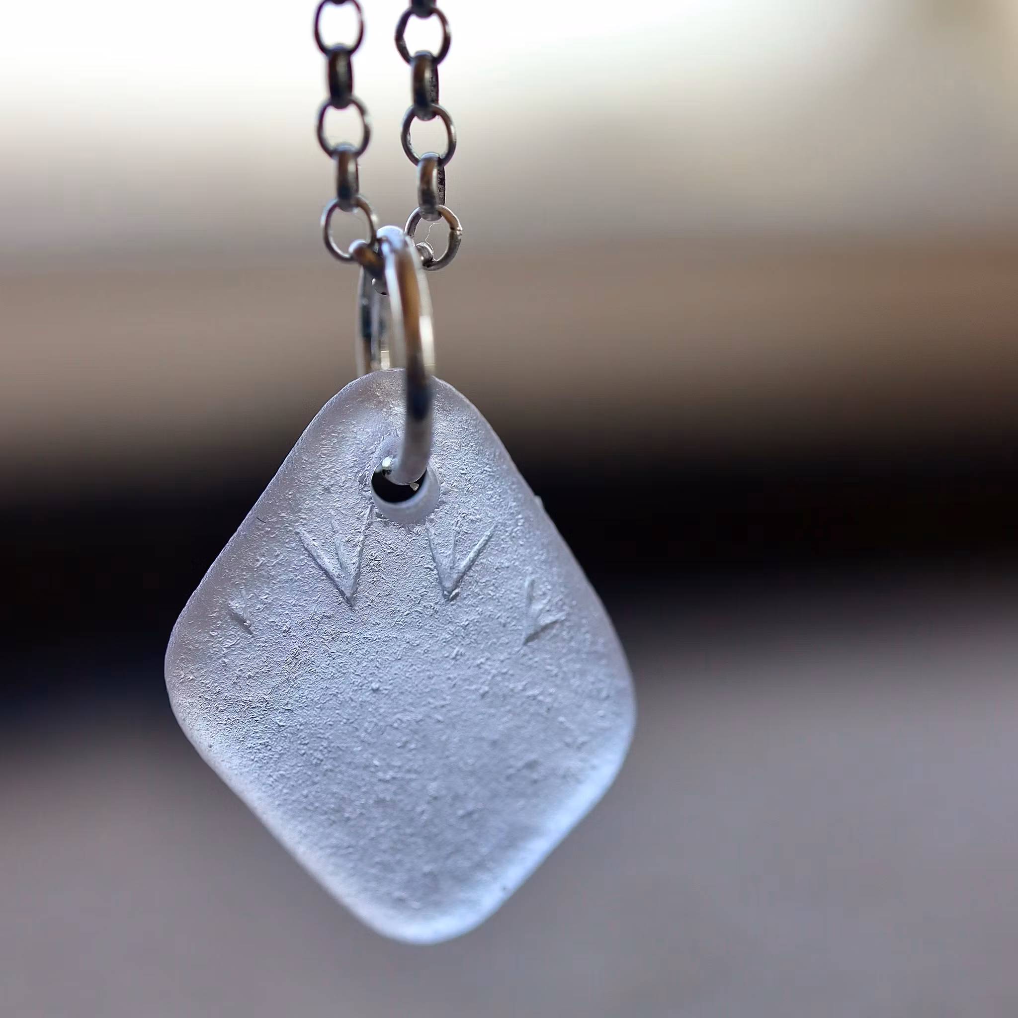 Unikt smycke format av vågor, sand och tid.