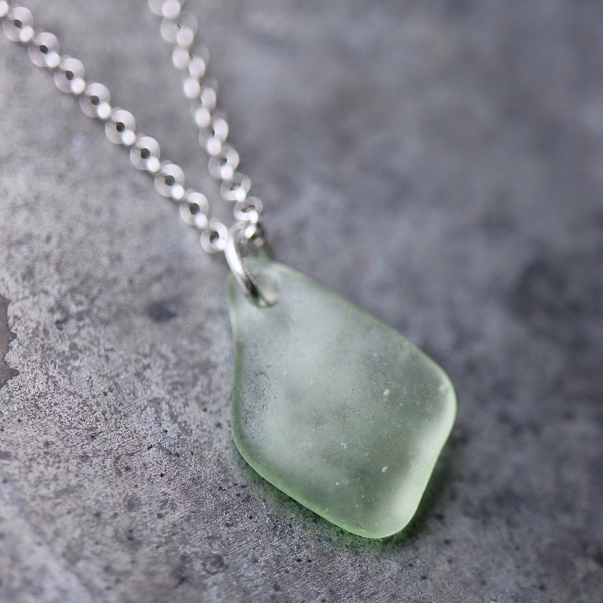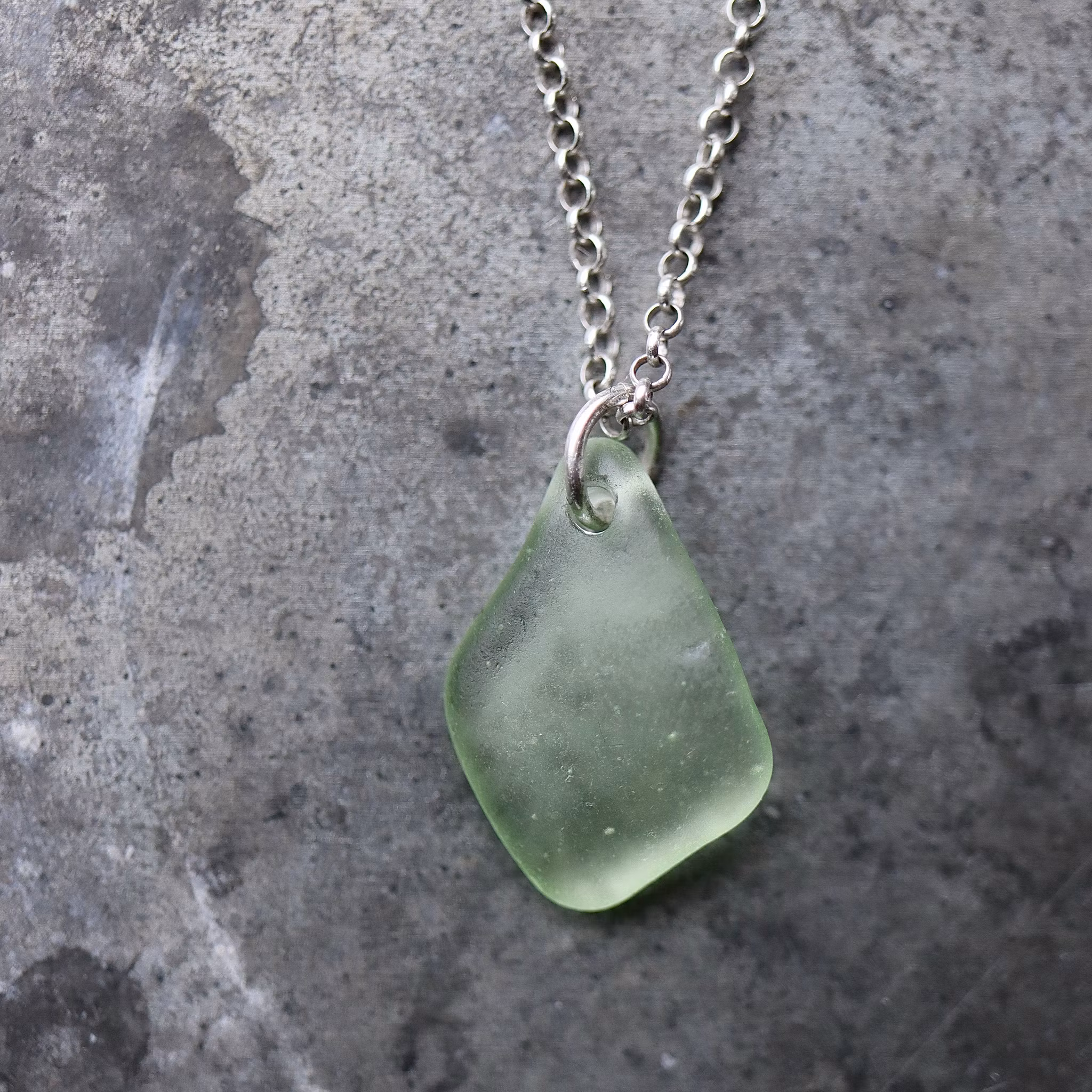 Havsglaset är samlat längs Skånes stränder och helt obearbetat, endast varsamt tvättat och borrat.
