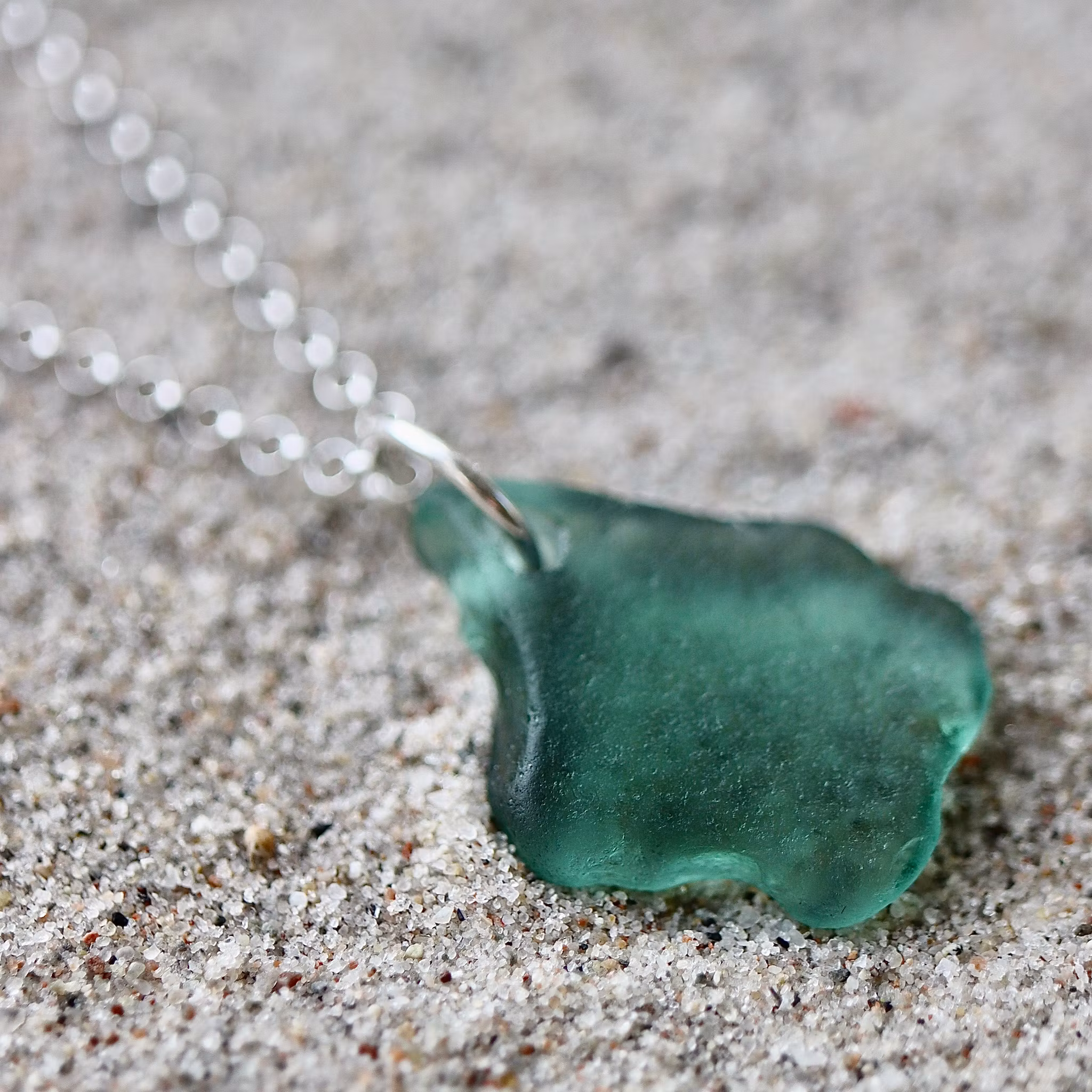 Havsglaset är samlat längs Skånes stränder och helt obearbetat, endast varsamt tvättat och borrat.