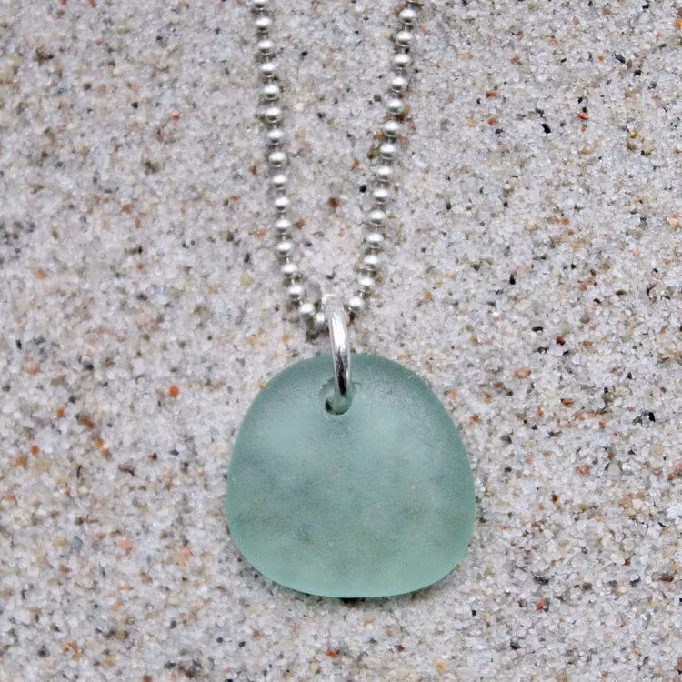 Havsglaset är samlat längs Skånes stränder och helt obearbetat, endast varsamt tvättat och borrat.