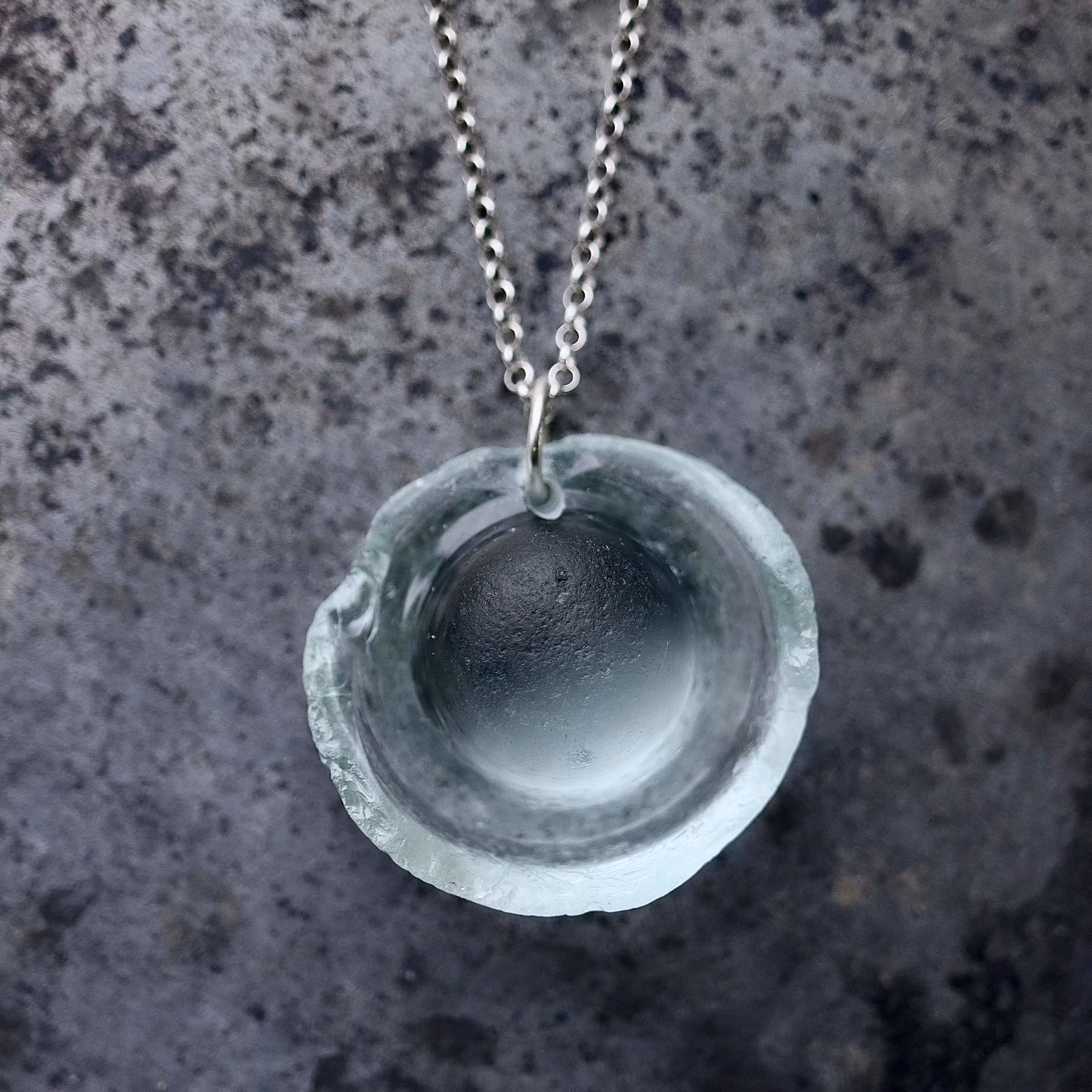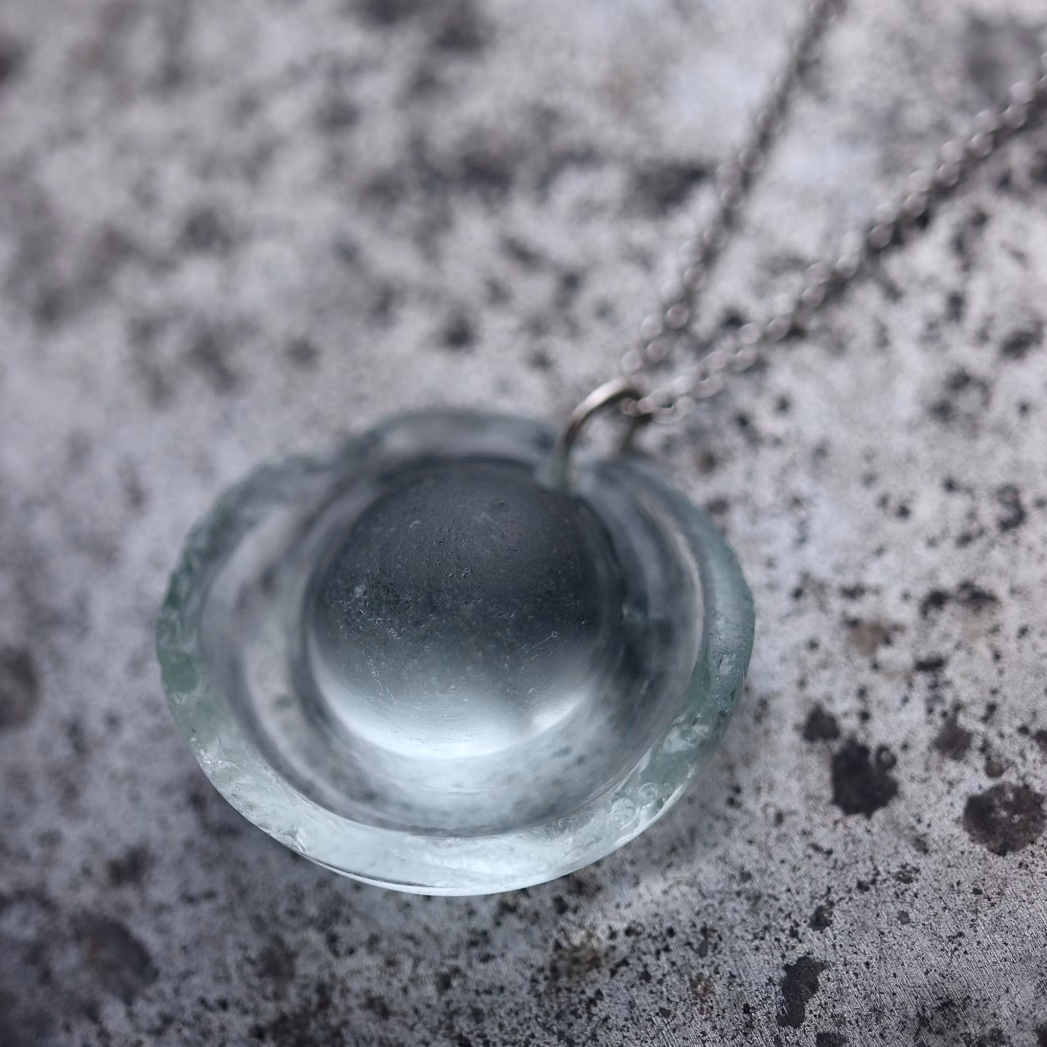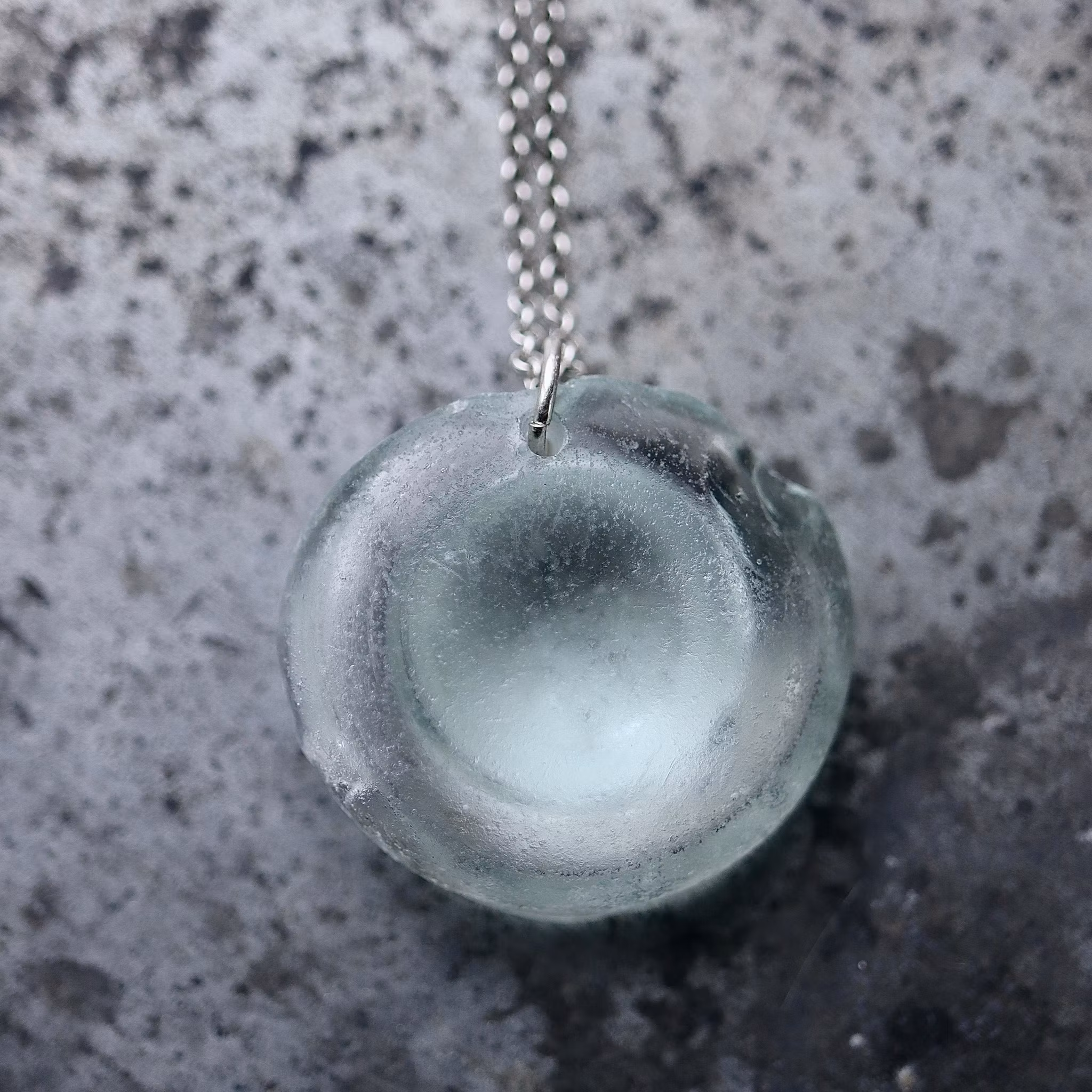 Havsglaset är samlat längs Skånes stränder och helt obearbetat, endast varsamt tvättat och borrat.