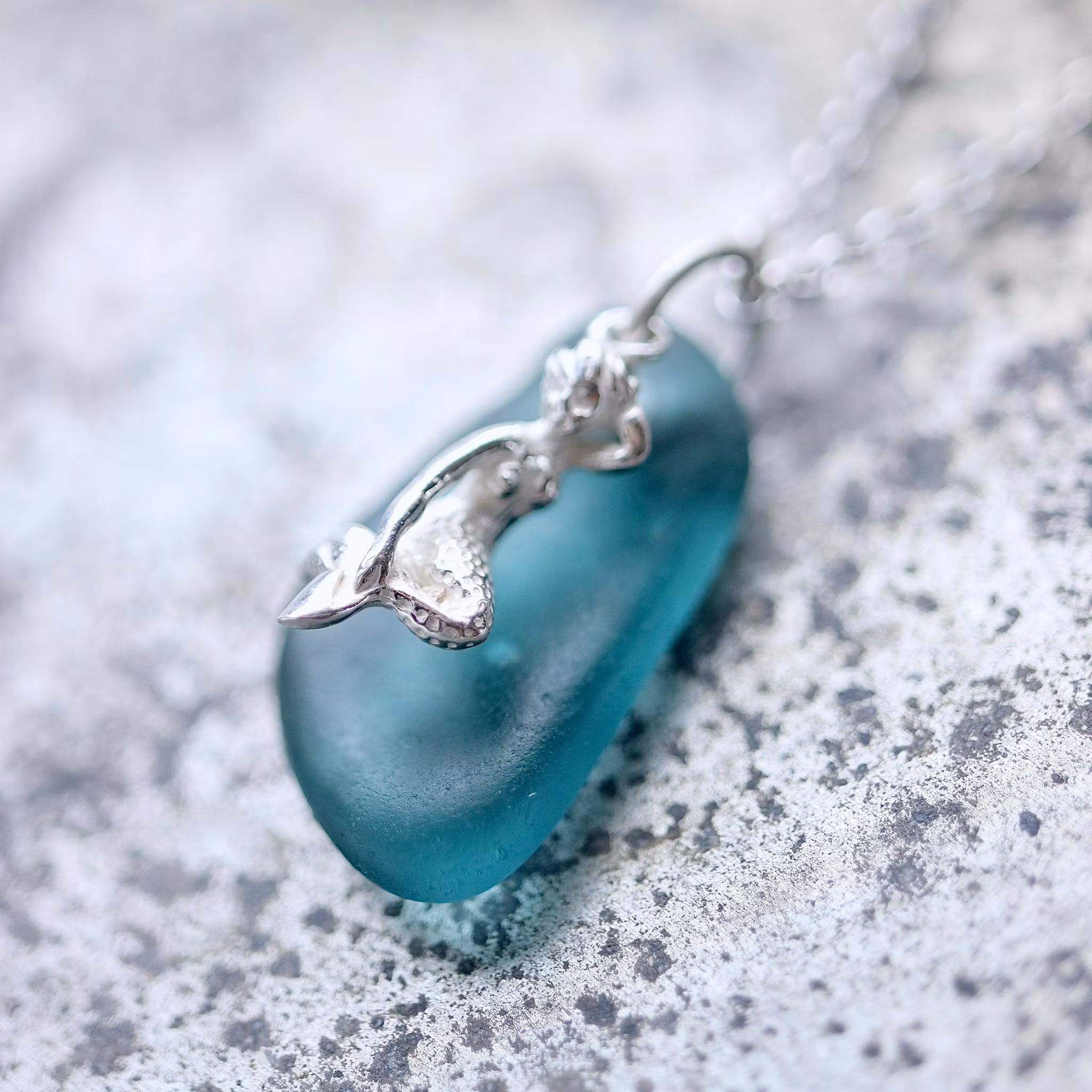 Glashänge ca 3 x 1,5 cm. Silversjöjungfru ca 2 x 1 cm.