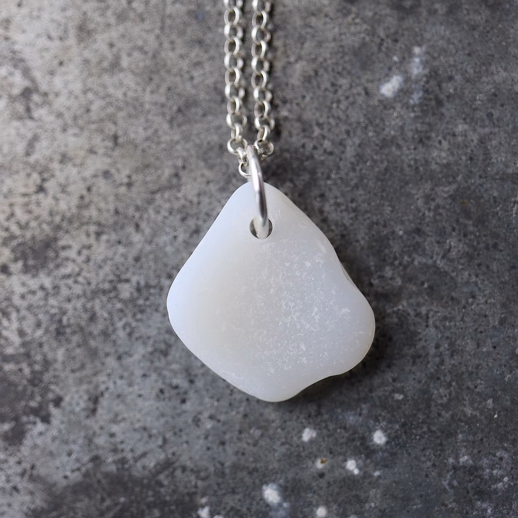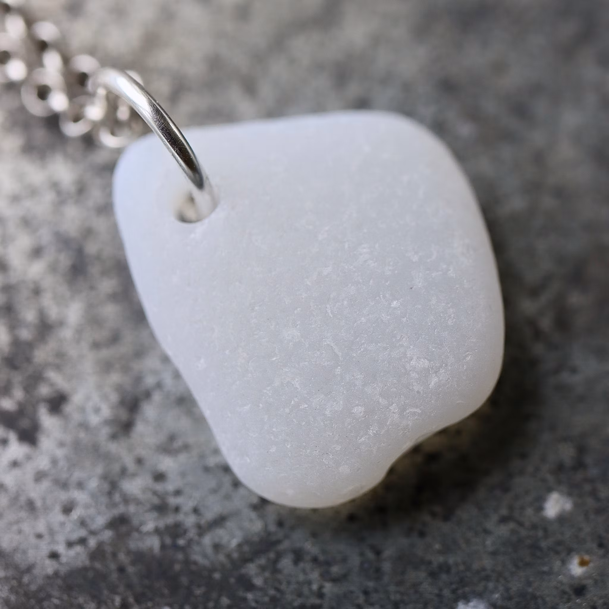 Havsglaset är samlat längs Skånes stränder och helt obearbetat, endast varsamt tvättat och borrat.