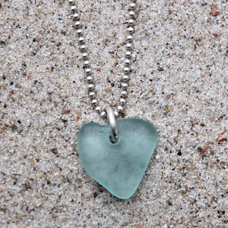 Havsglaset är samlat längs Skånes stränder och helt obearbetat, endast varsamt tvättat och borrat.