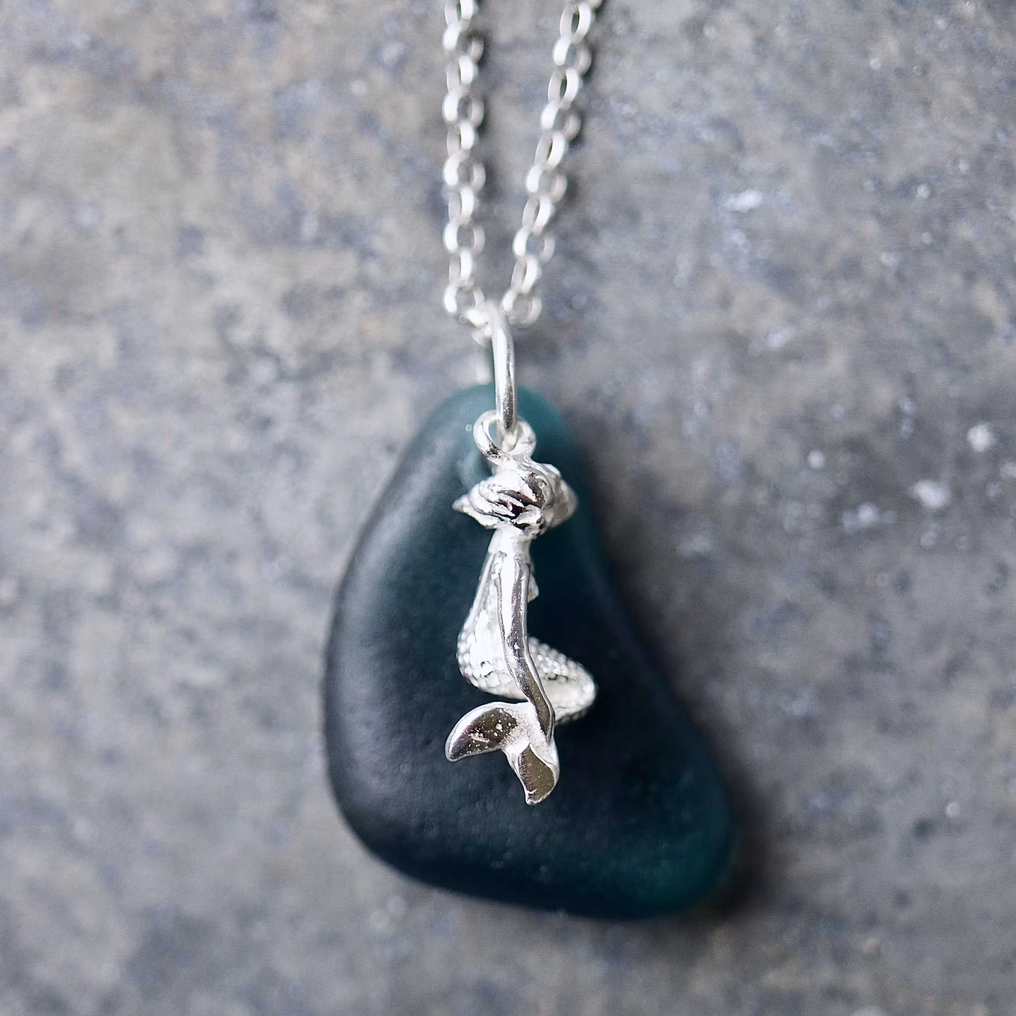 Glashänge ca 3 x 2 cm. Silversjöjungfru ca 2 x 1 cm.