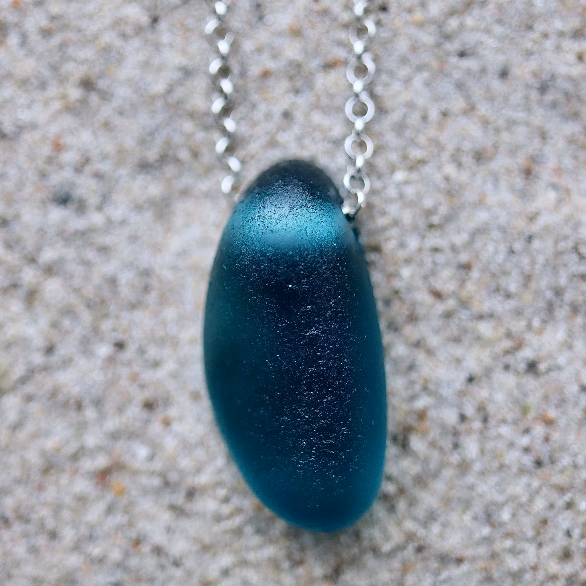 Halskedja av äkta silver, välj mellan 45, 50 och 60 cm, i låset sitter en plexitag "Havsglas" tillverkad i Sverige.