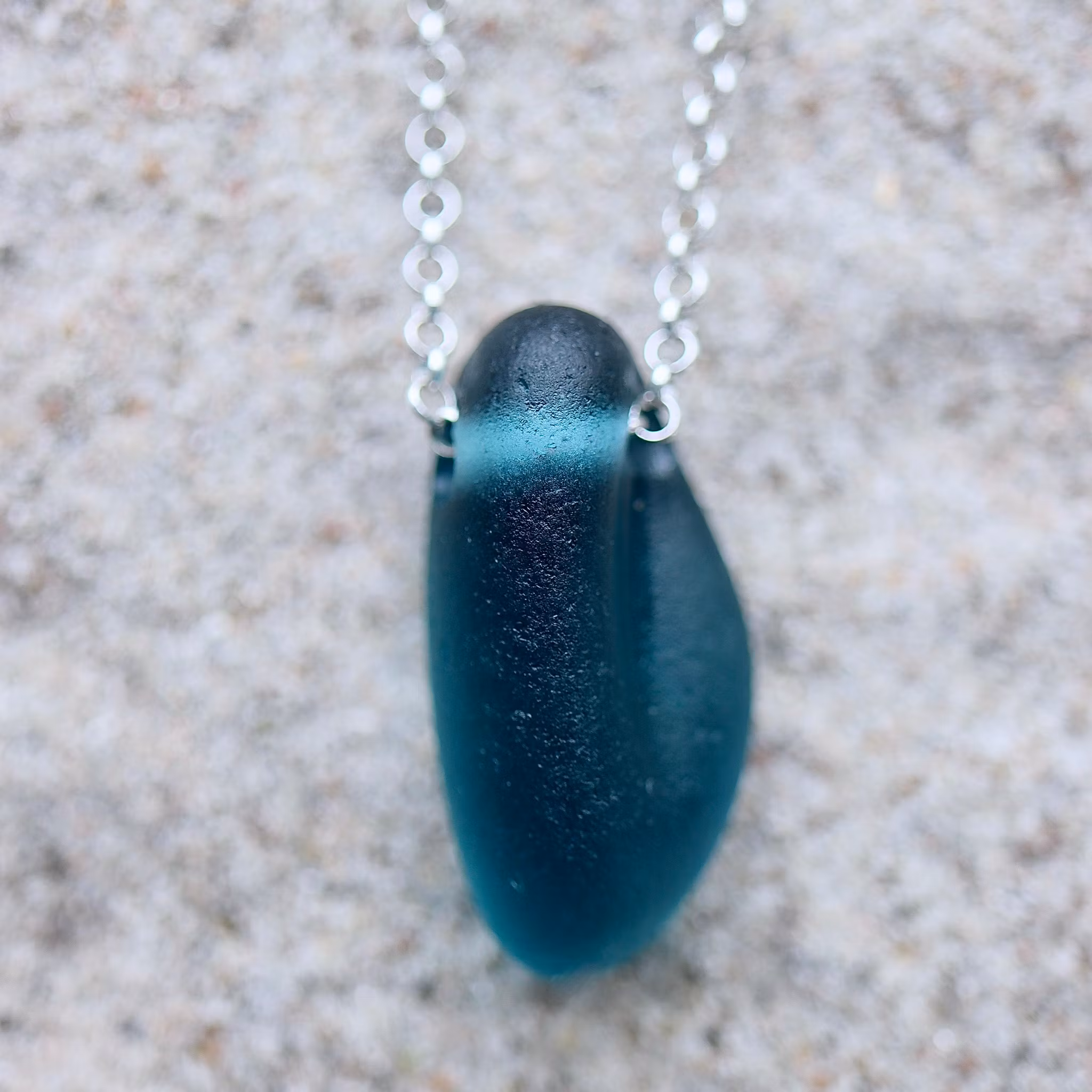 Havsglaset är samlat längs Skånes stränder och helt obearbetat, endast varsamt tvättat och borrat.
