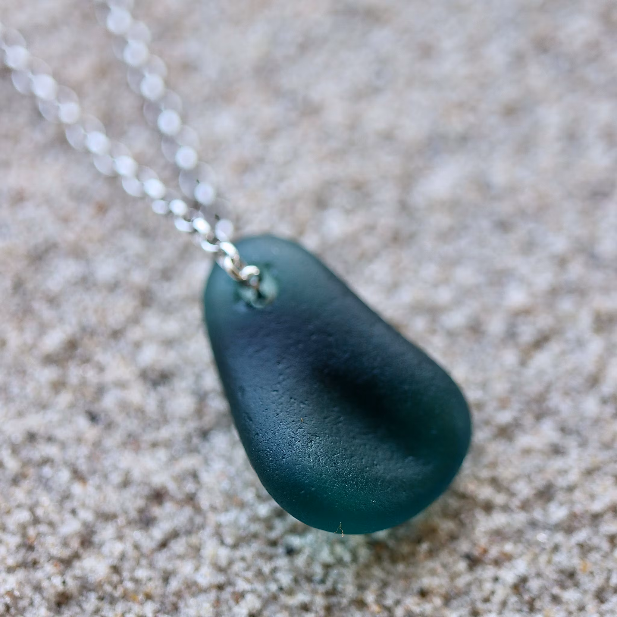 Havsglaset är samlat längs Skånes stränder och helt obearbetat, endast varsamt tvättat och borrat.