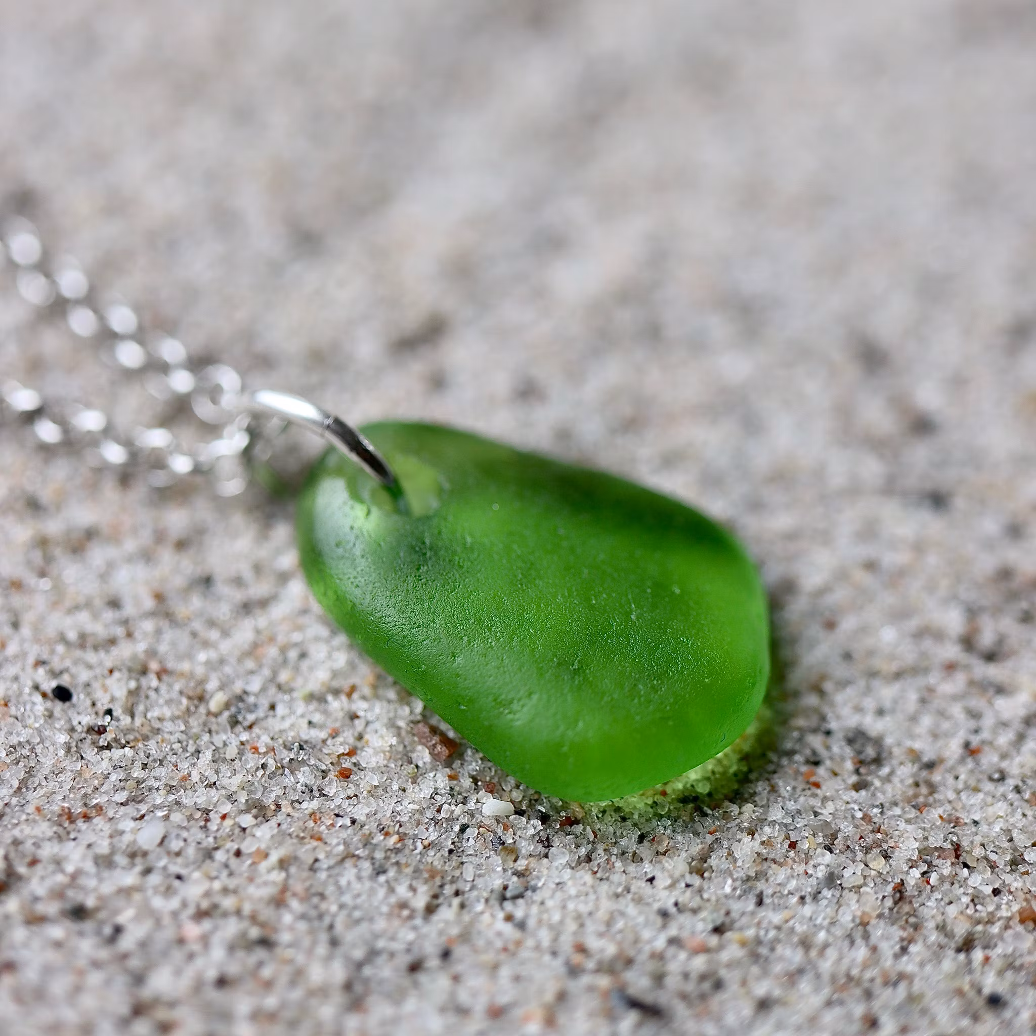 Havsglaset är samlat längs Skånes stränder och helt obearbetat, endast varsamt tvättat och borrat.