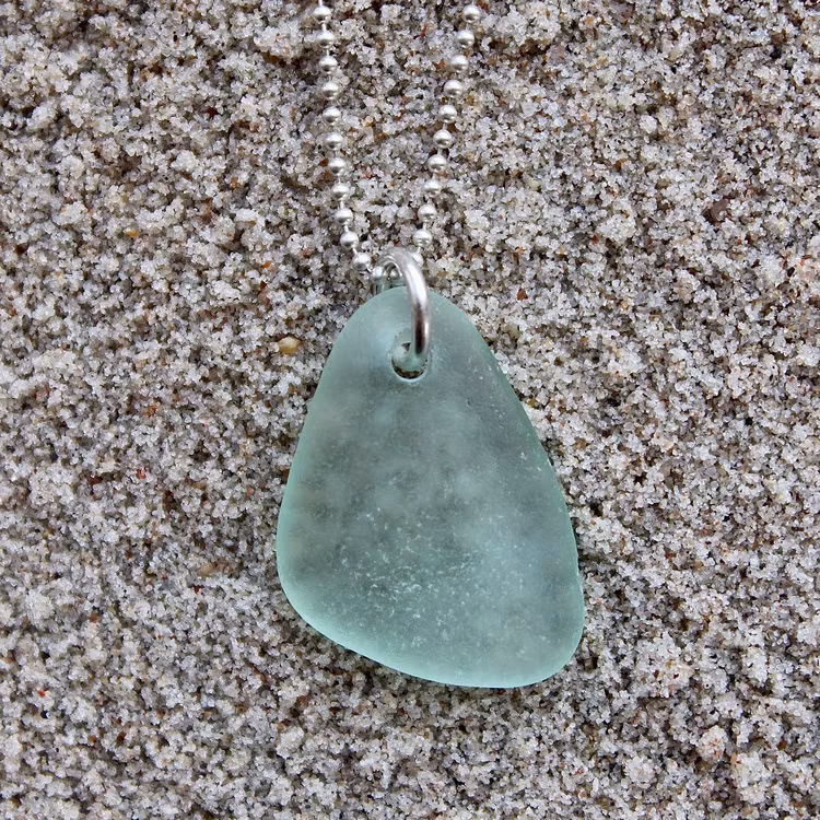 Havsglaset är samlat längs Skånes stränder och helt obearbetat, endast varsamt tvättat och borrat.