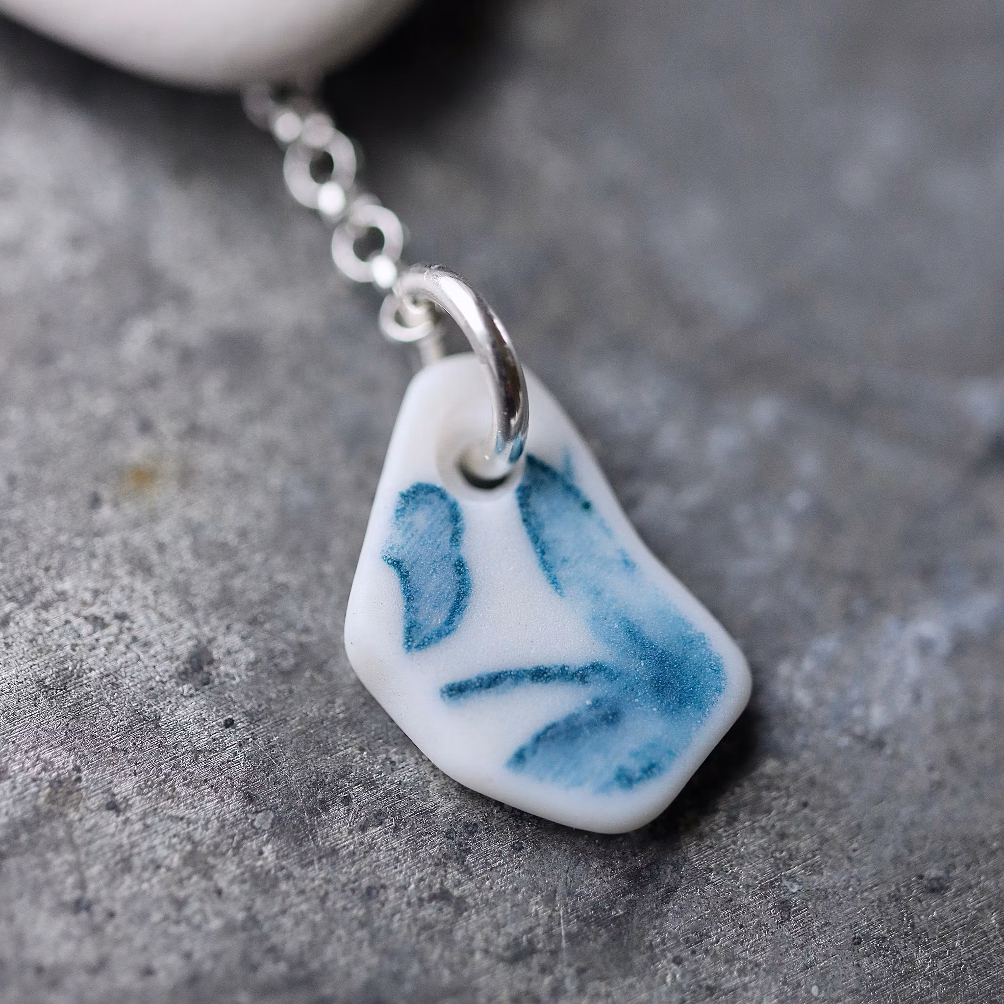 Havsporslinet är samlat längs Skånes stränder och helt obearbetat, endast varsamt tvättat och borrat.