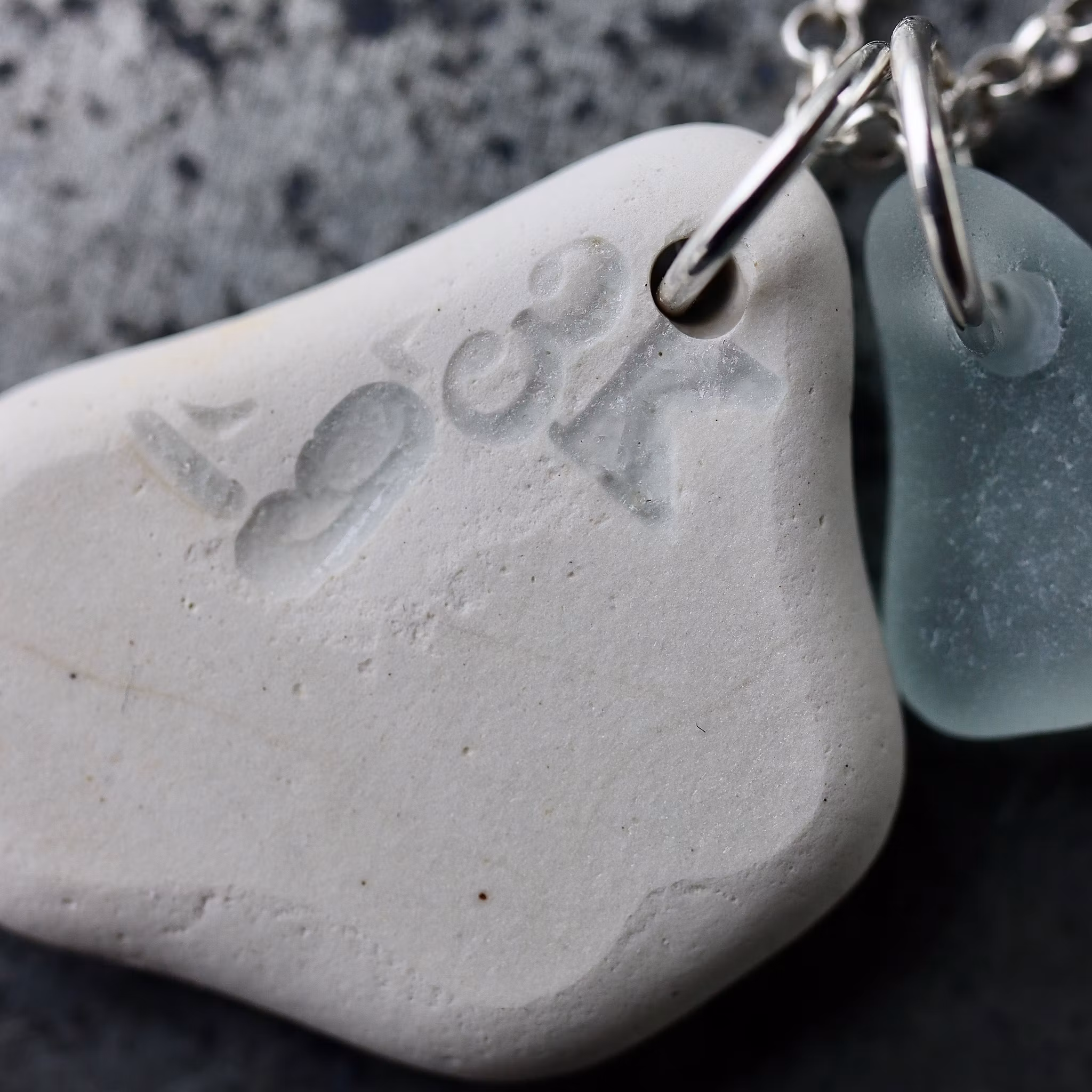 Havsglaset och havsporslinet är samlat längs Skånes stränder och helt obearbetat, endast varsamt tvättat och borrat.