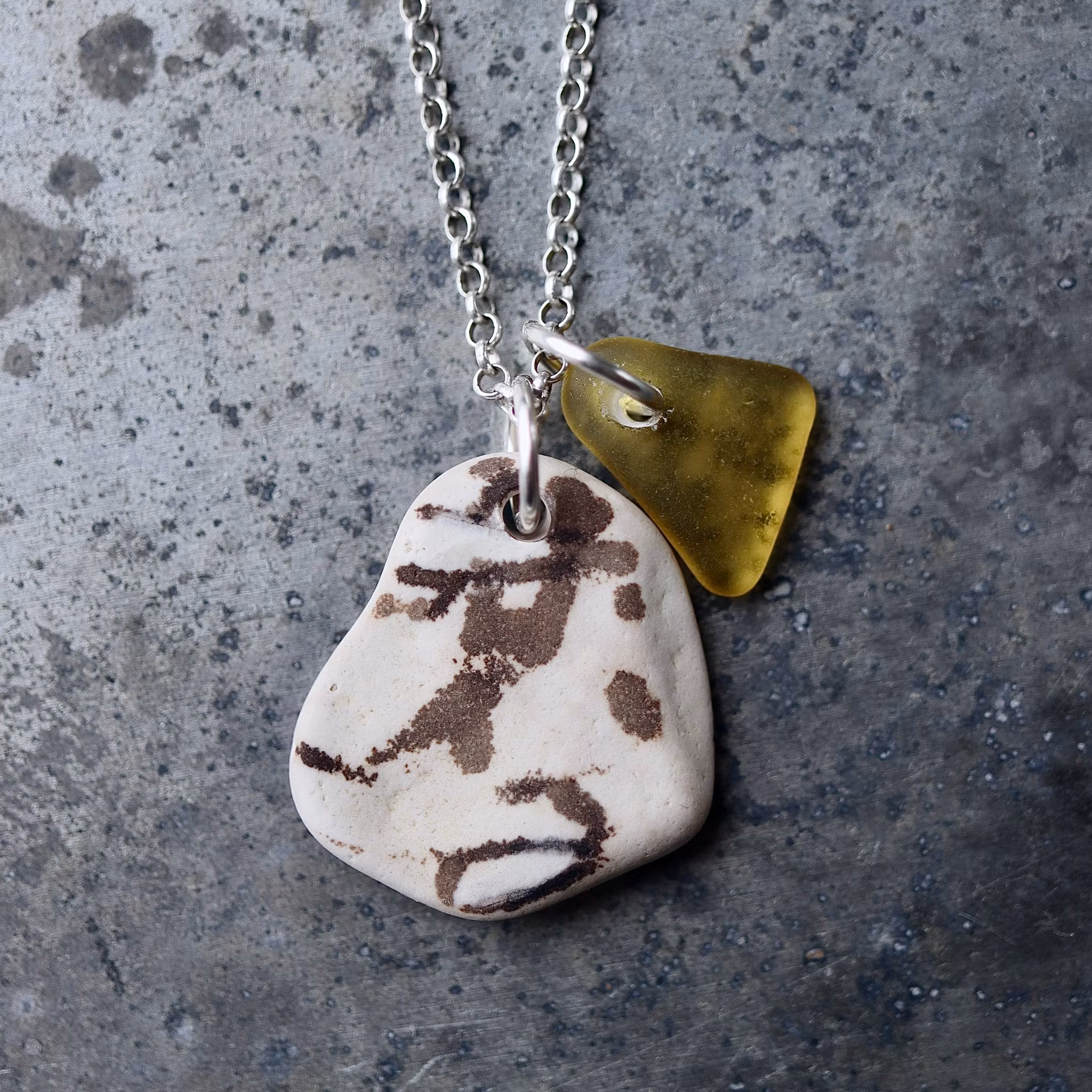 Havsglaset och havsporslinet är samlat längs Skånes stränder och helt obearbetat, endast varsamt tvättat och borrat.