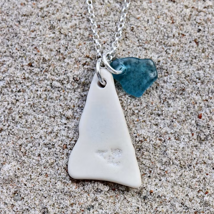Havsglaset och havsporslinet är samlat längs Skånes stränder och helt obearbetat, endast varsamt tvättat och borrat.