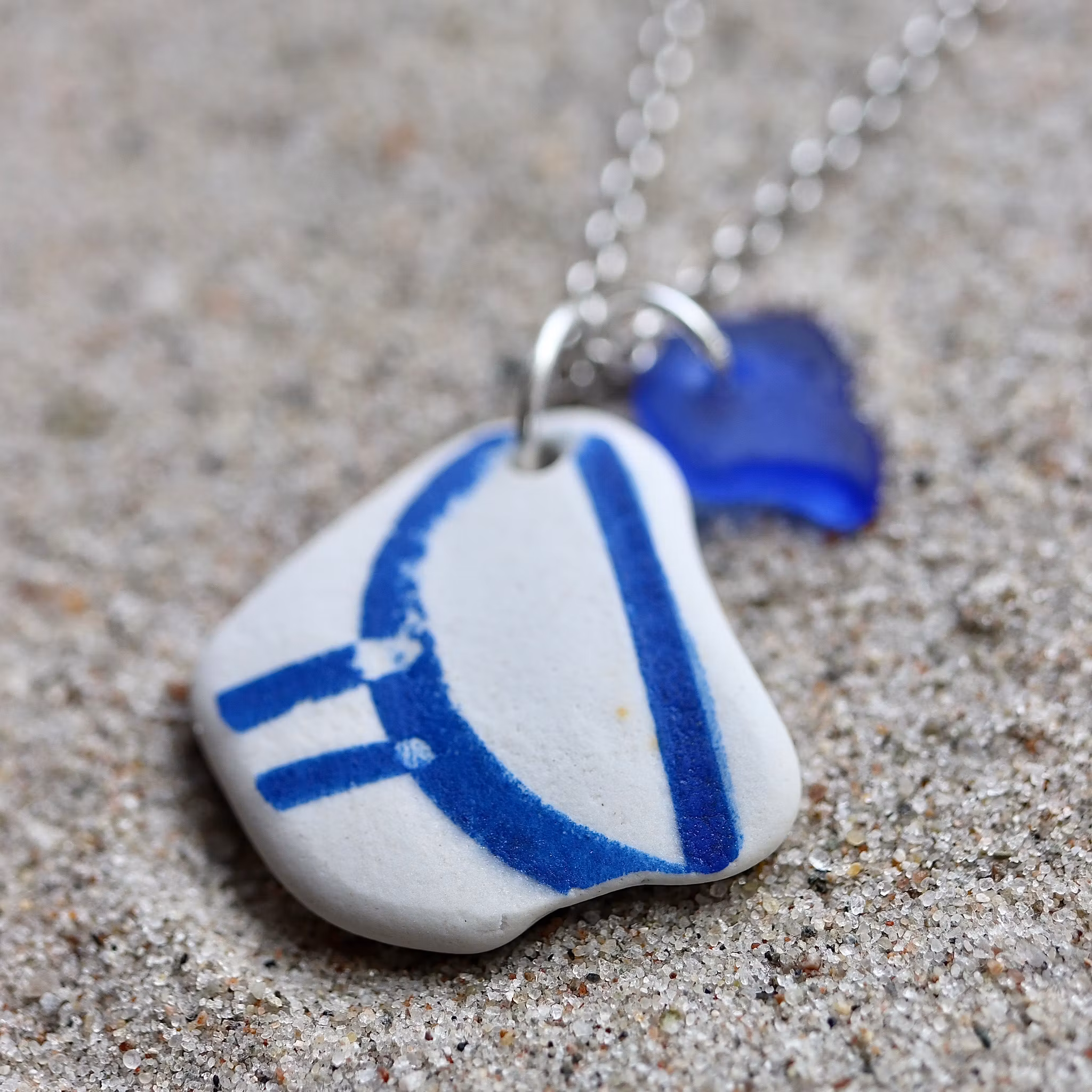 Havsglaset och havsporslinet är samlat längs Skånes stränder och helt obearbetat, endast varsamt tvättat och borrat.