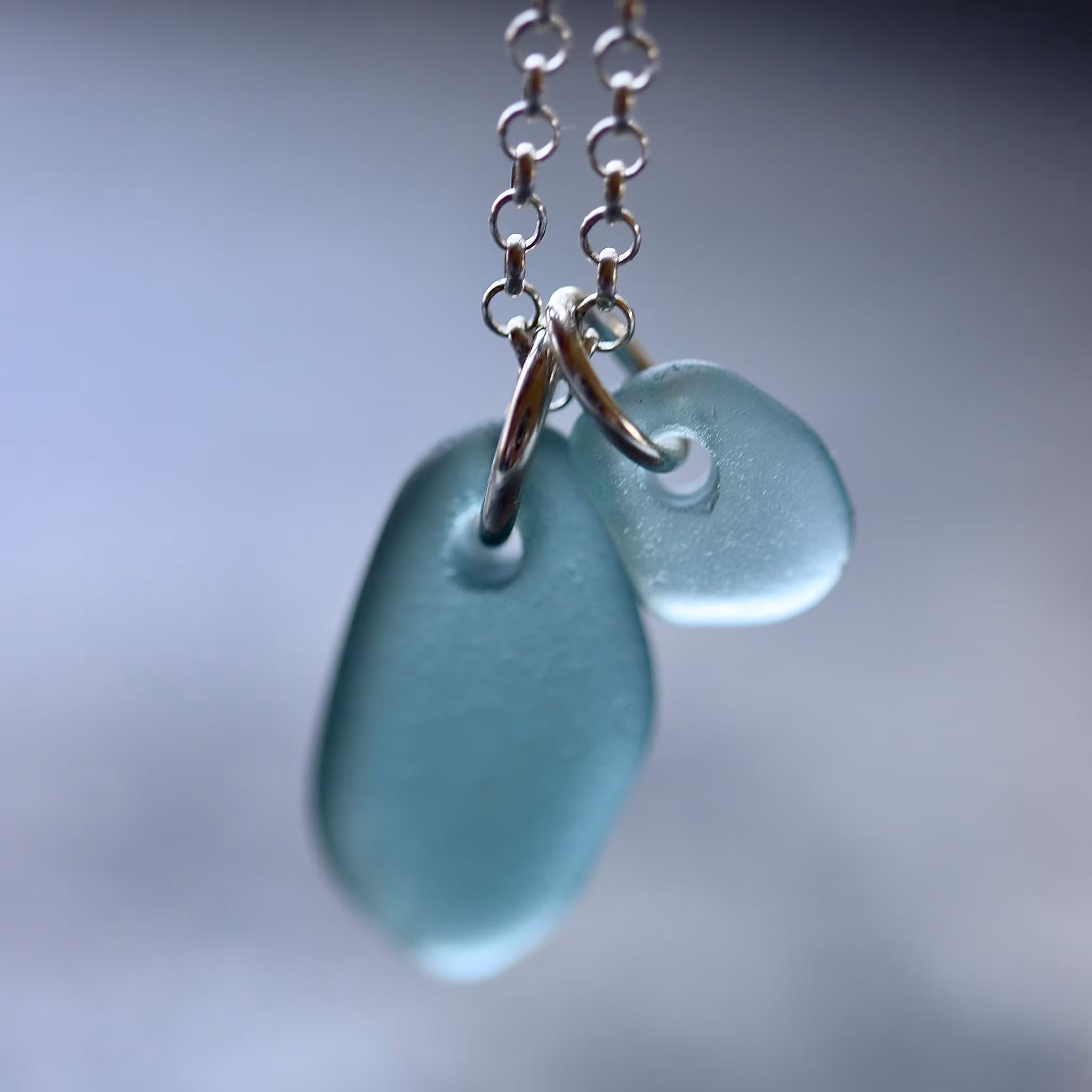 Havsglaset är samlat längs Skånes stränder och helt obearbetat, endast varsamt tvättat och borrat.