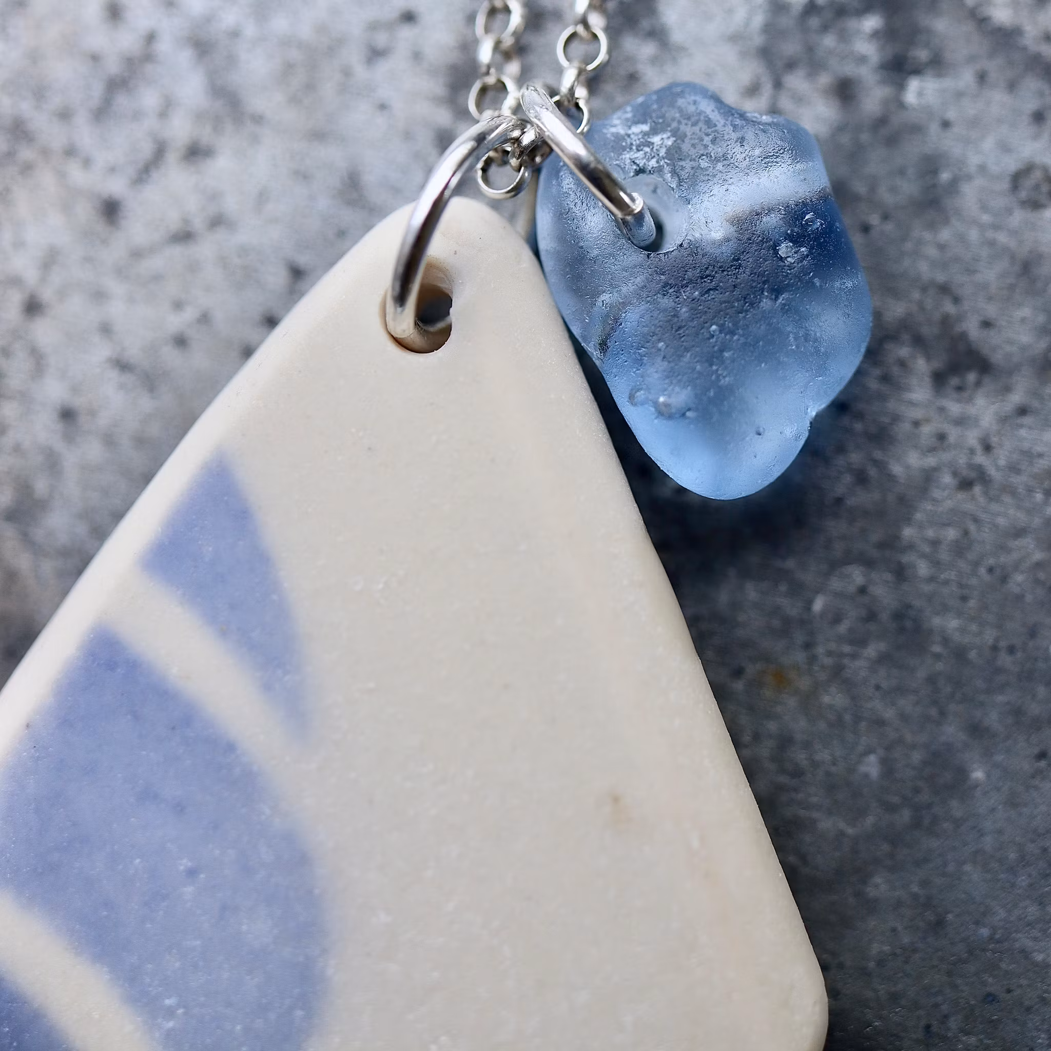 Havsglaset och havsporslinet är samlat längs Skånes stränder och helt obearbetat, endast varsamt tvättat och borrat.