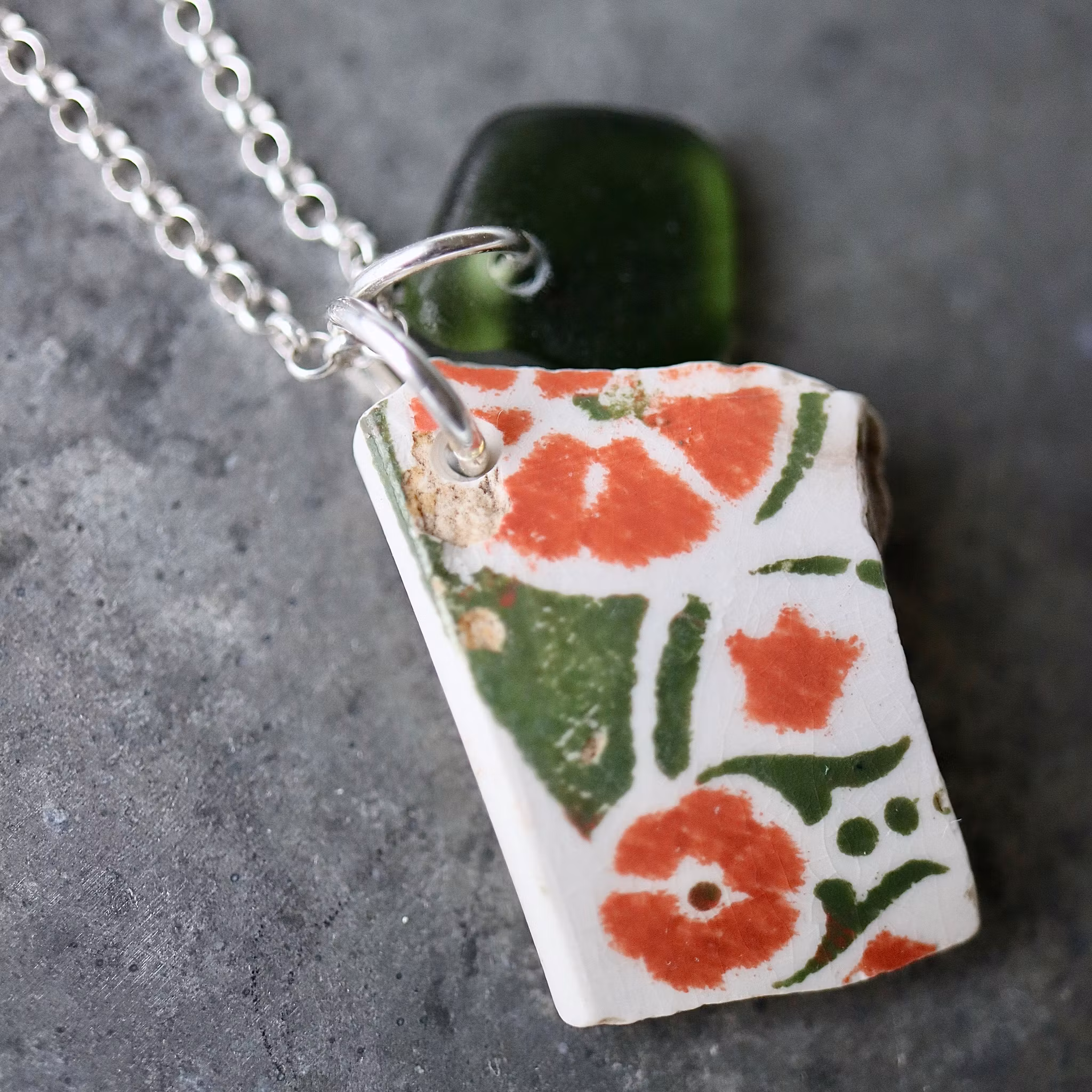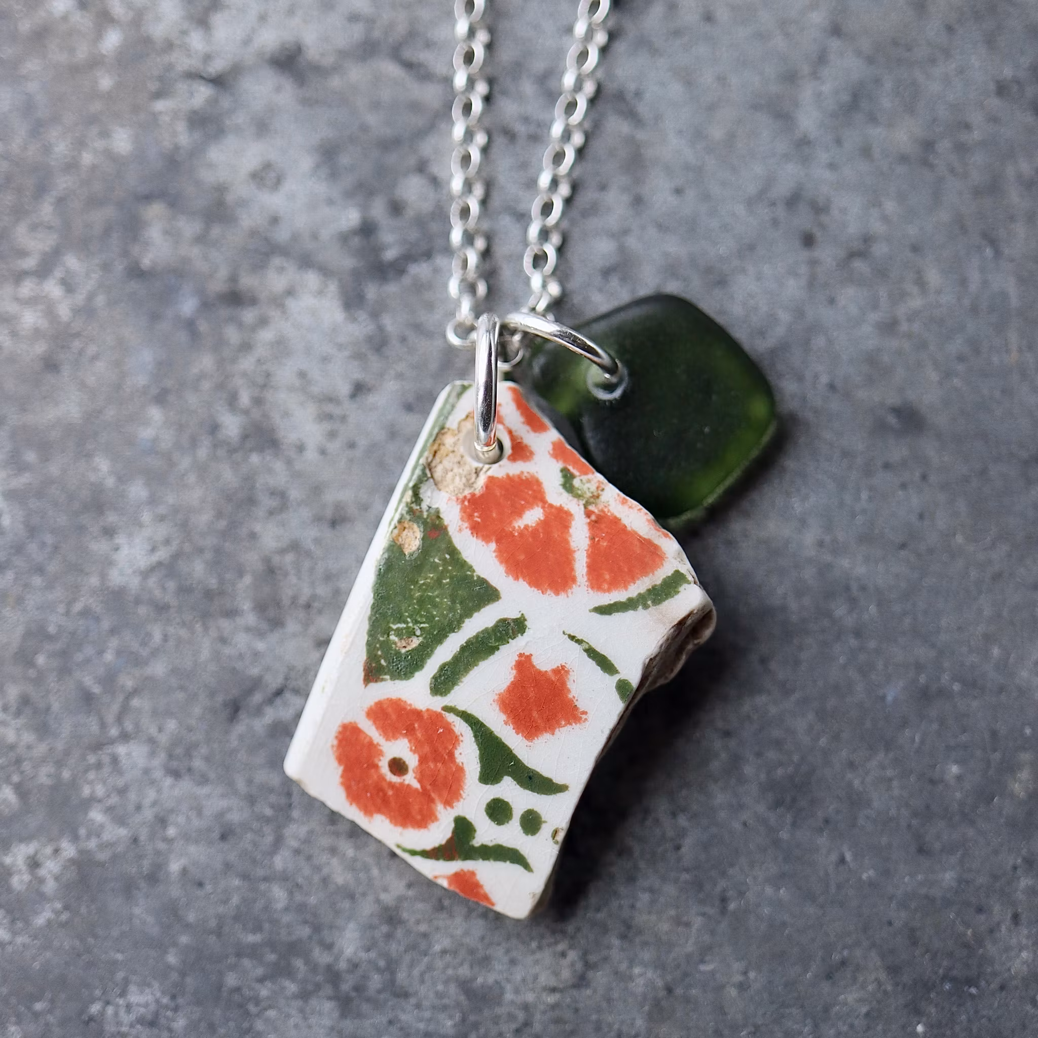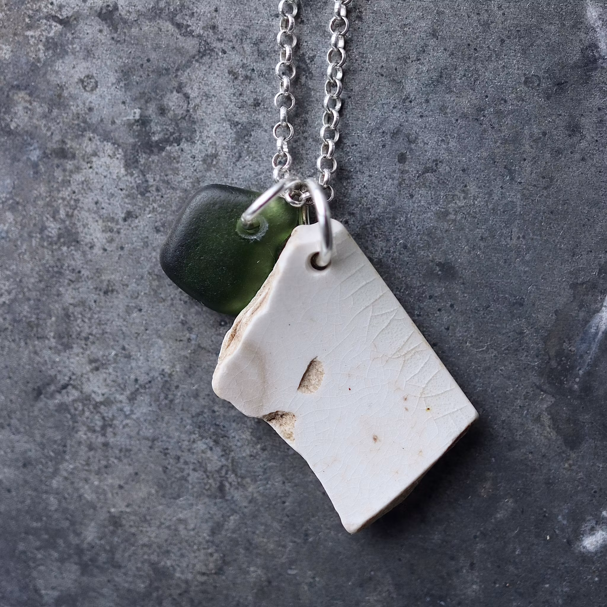 Havsglaset och havsporslinet är samlat längs Skånes stränder och helt obearbetat, endast varsamt tvättat och borrat.