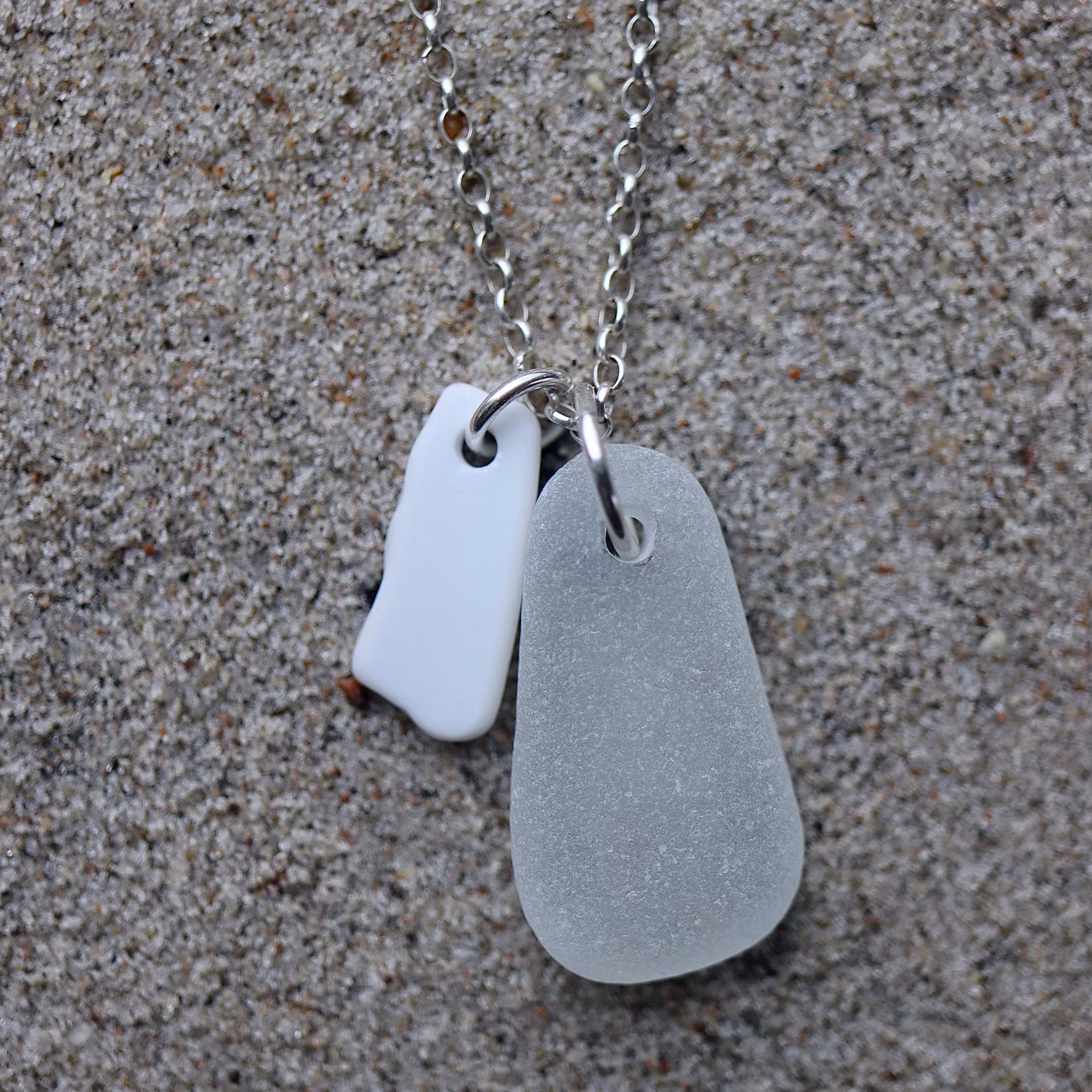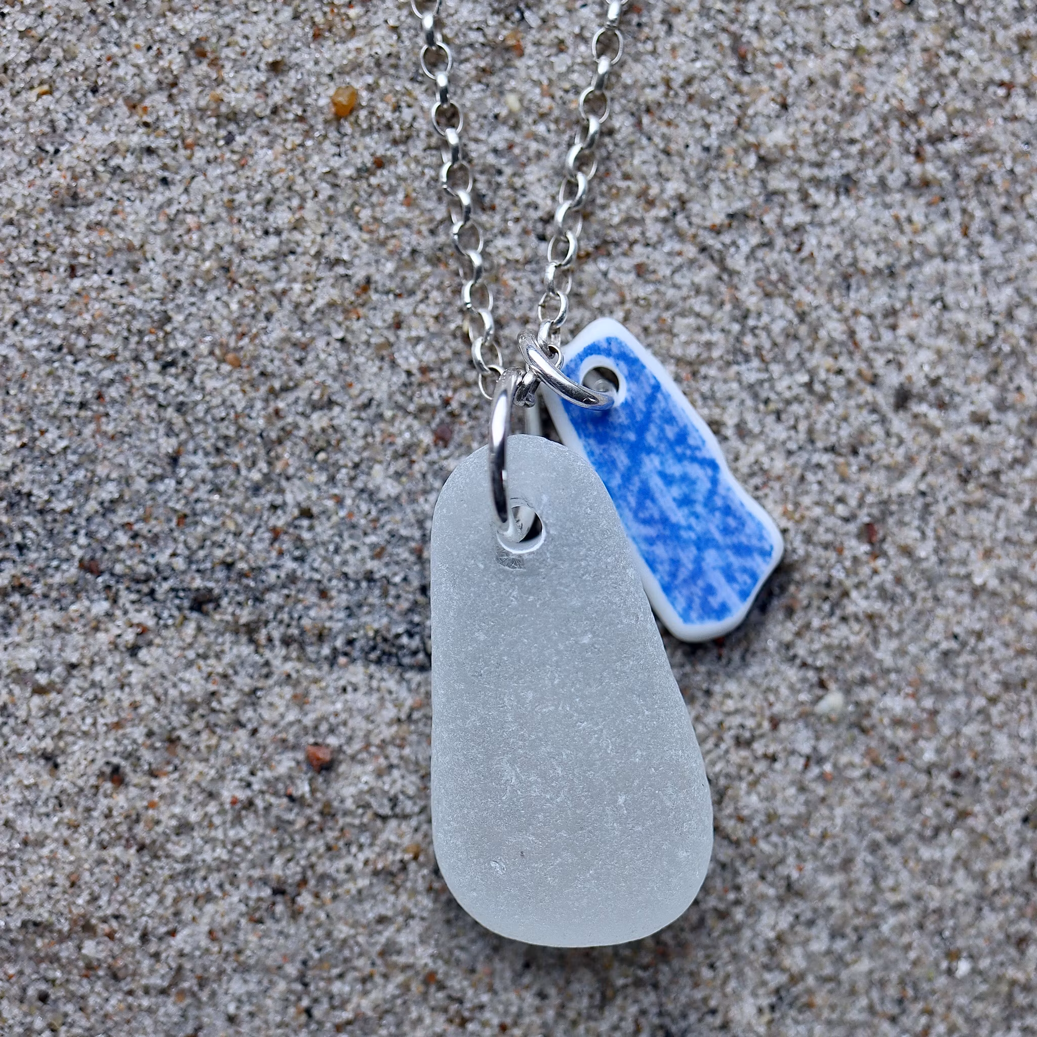 Havsglaset och havsporslinet är samlat längs Skånes stränder och helt obearbetat, endast varsamt tvättat och borrat.