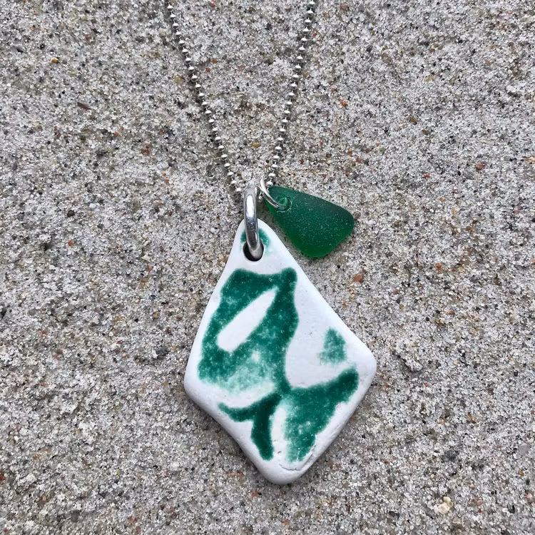 Havsglaset och havsporslinet är samlat längs Skånes stränder och helt obearbetat, endast varsamt tvättat och borrat.
