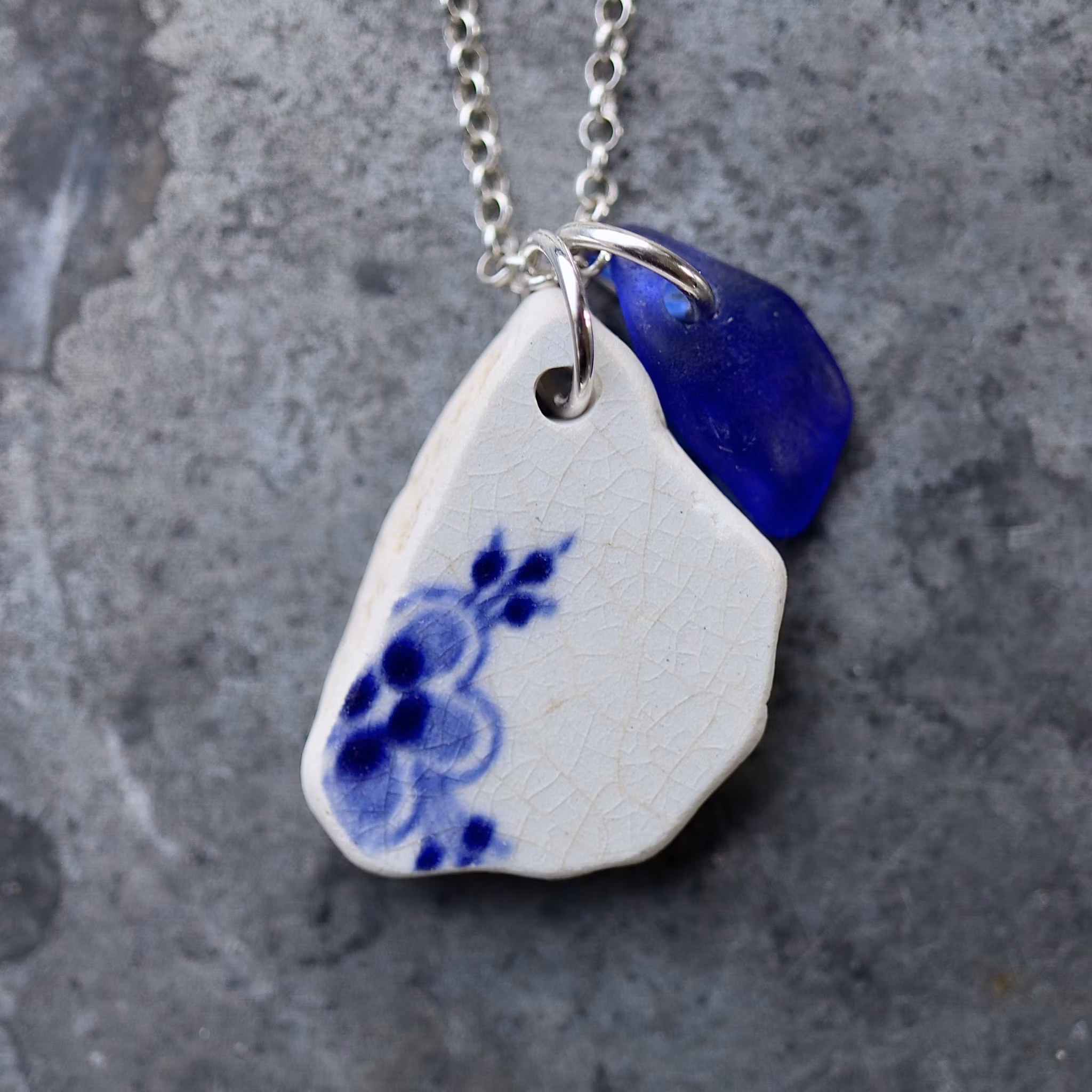 Havsglaset och havsporslinet är samlat längs Skånes stränder och helt obearbetat, endast varsamt tvättat och borrat.