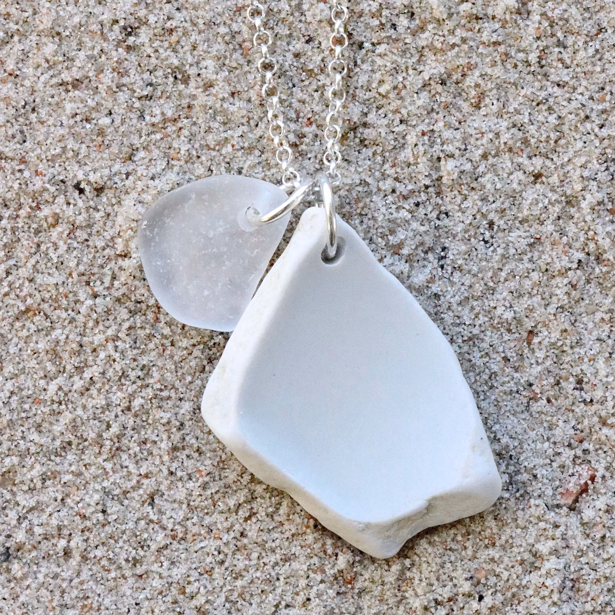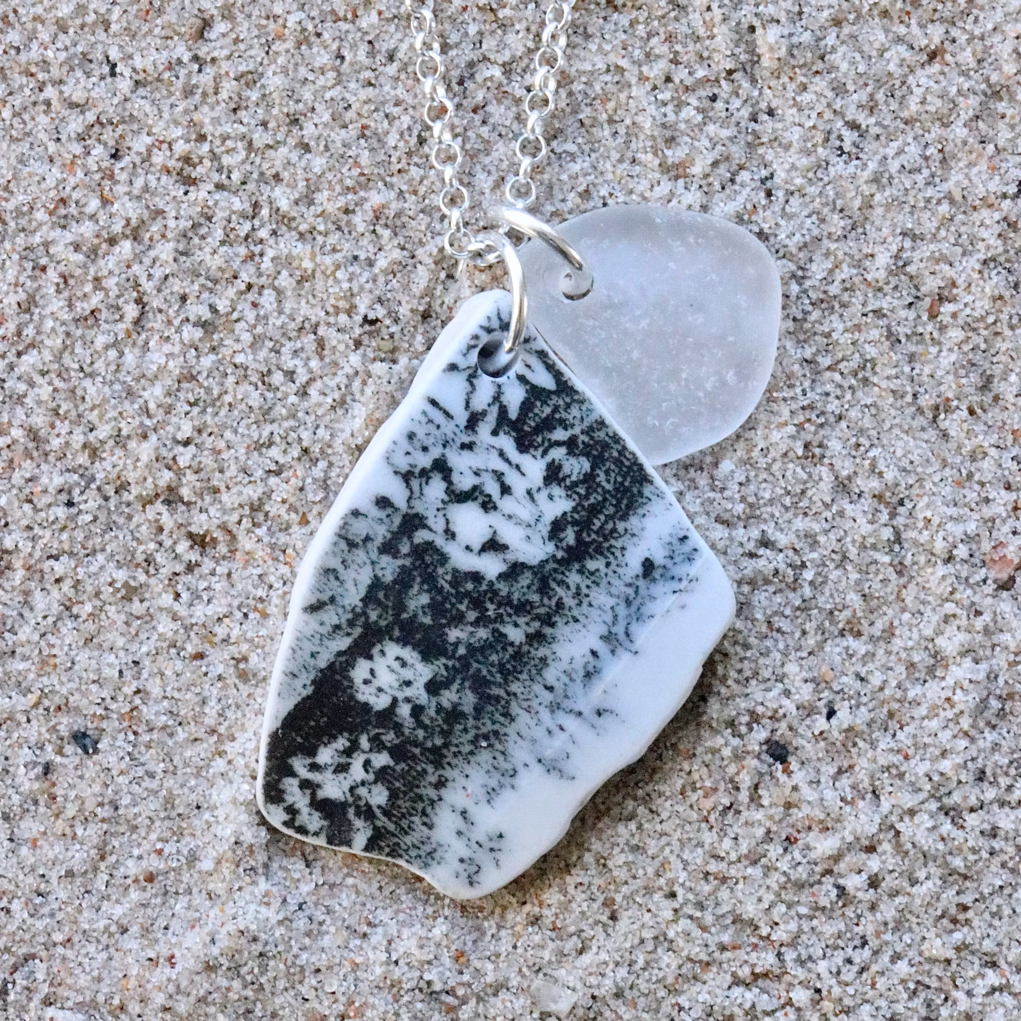Havsglaset och havsporslinet är samlat längs Skånes stränder och helt obearbetat, endast varsamt tvättat och borrat.