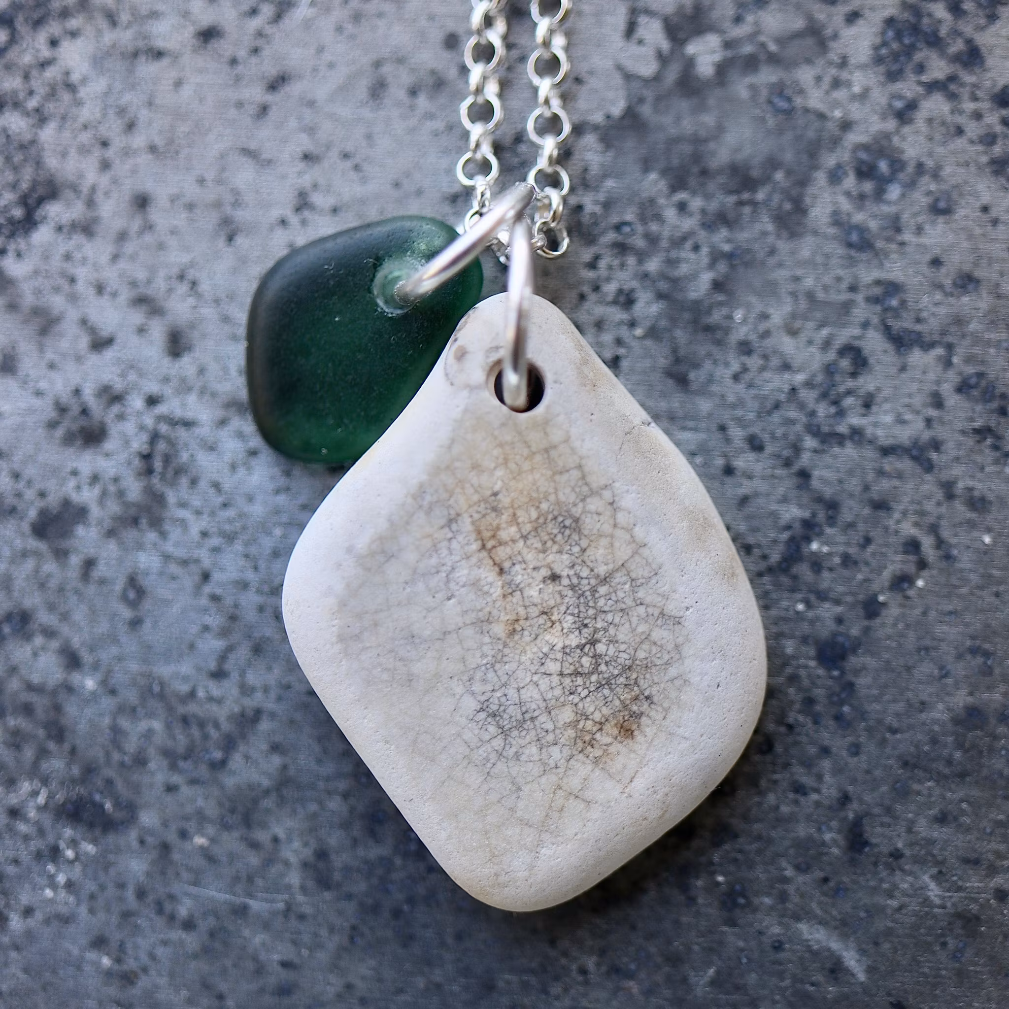 Havsglaset och havsporslinet är samlat längs Skånes stränder och helt obearbetat, endast varsamt tvättat och borrat.