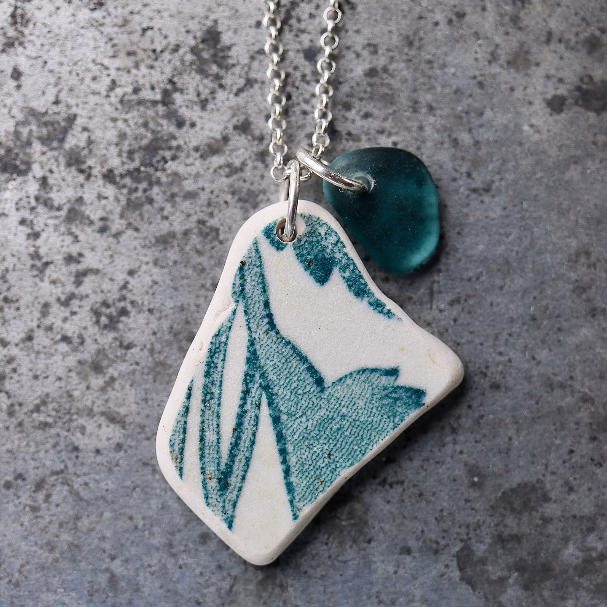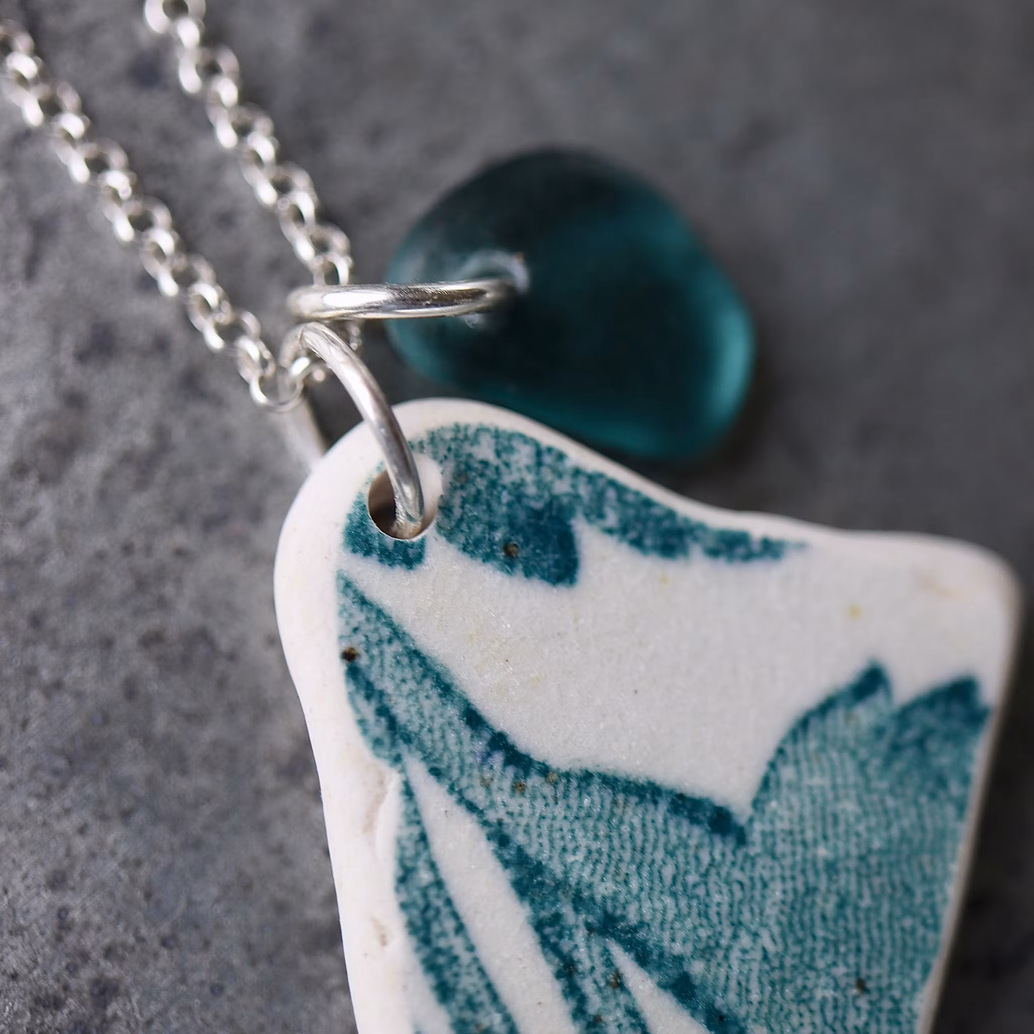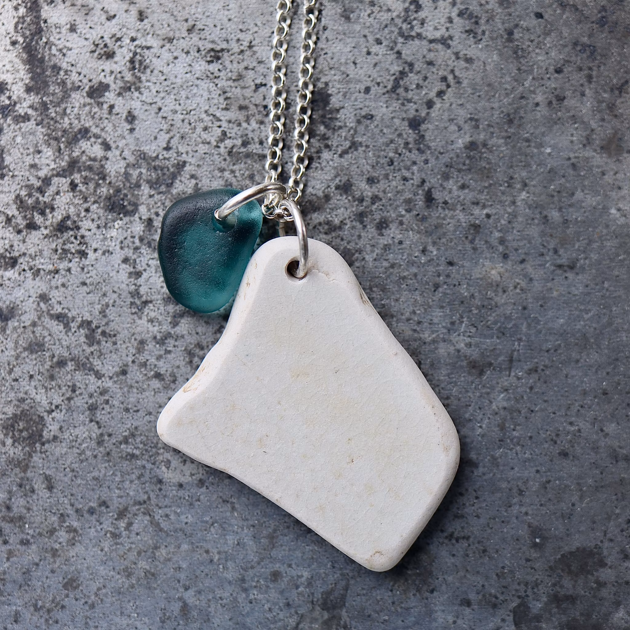 Havsglaset och havsporslinet är samlat längs Skånes stränder och helt obearbetat, endast varsamt tvättat och borrat.