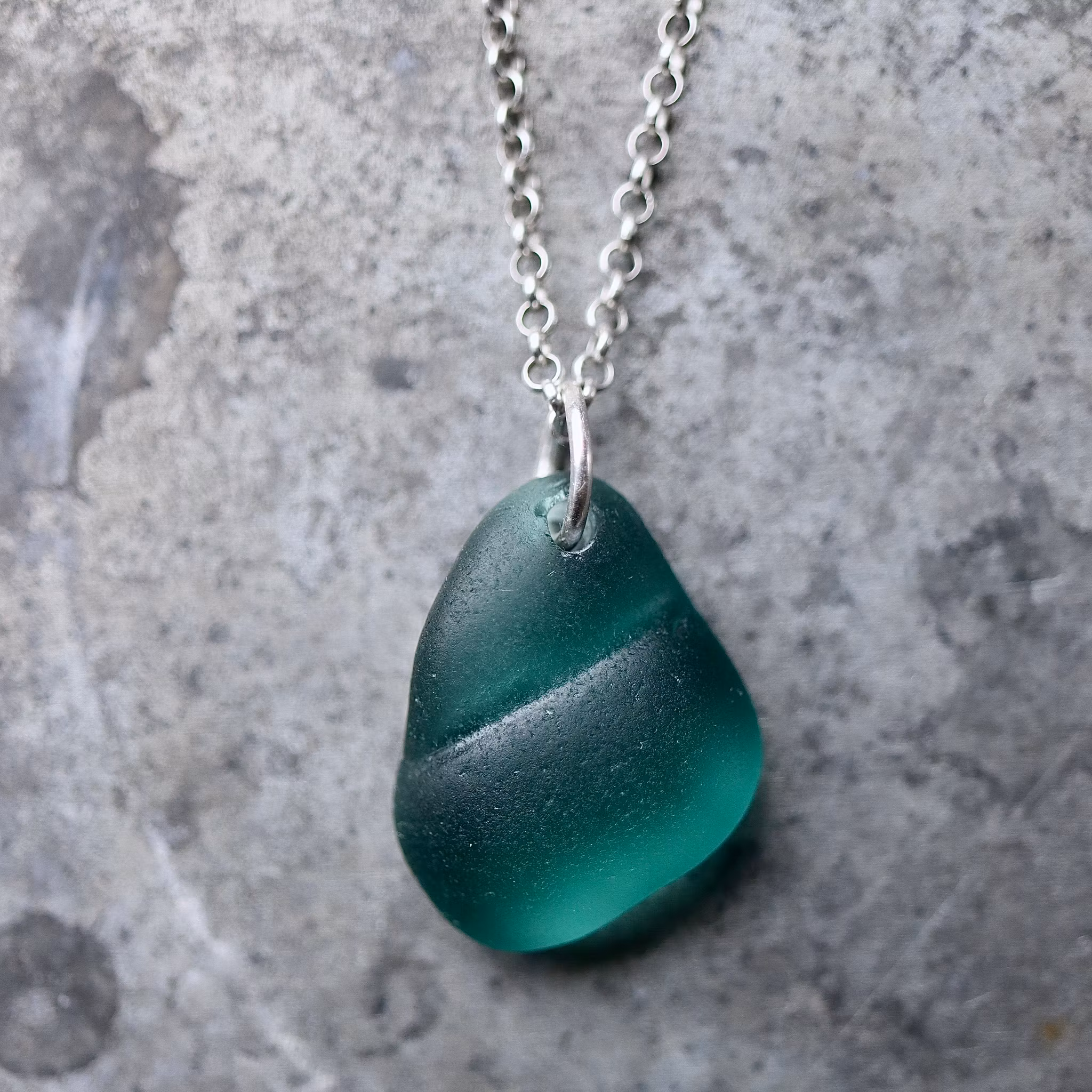 Havsglaset är samlat längs Skånes stränder och helt obearbetat, endast varsamt tvättat och borrat.