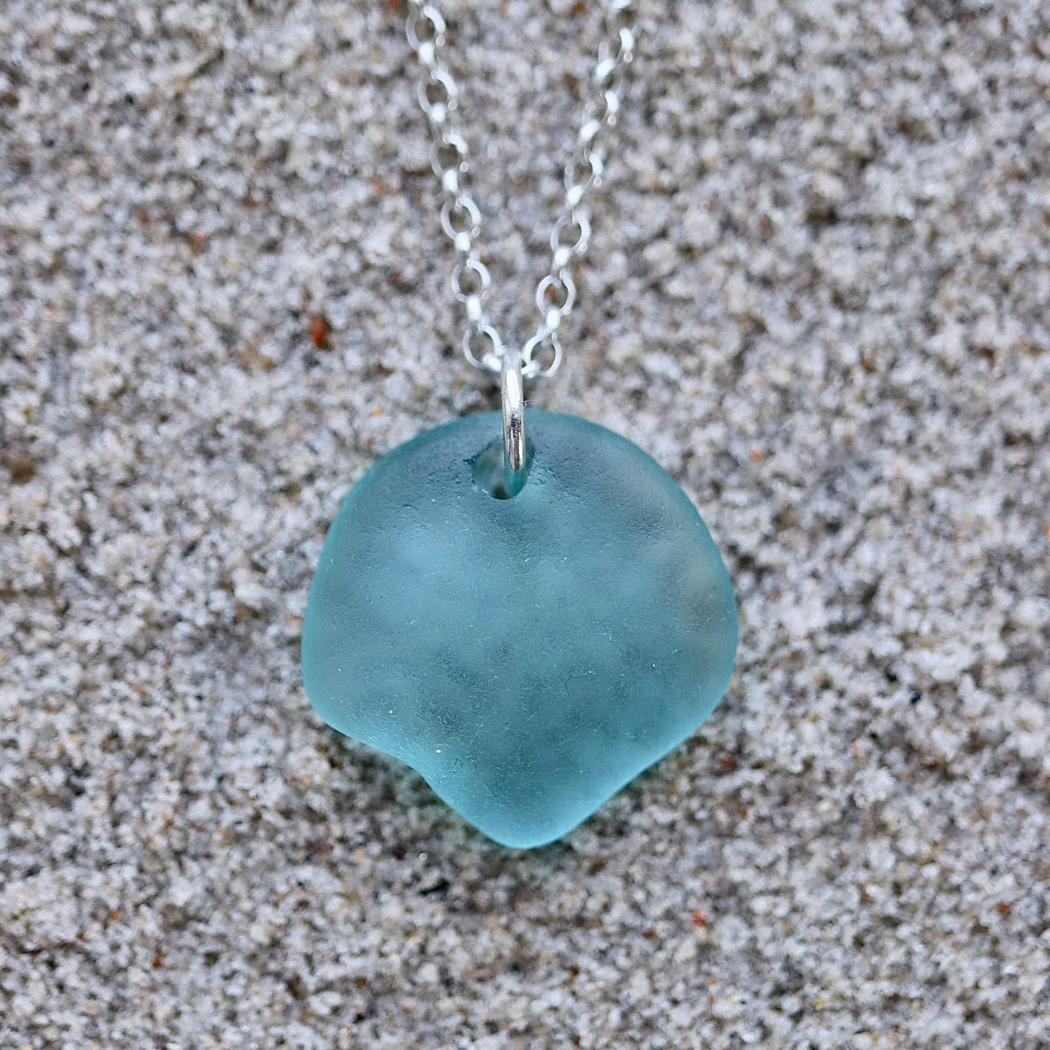 Halskedja av äkta silver, välj mellan 45, 50 och 60 cm, i låset sitter en plexitag "Havsglas" tillverkad i Sverige.