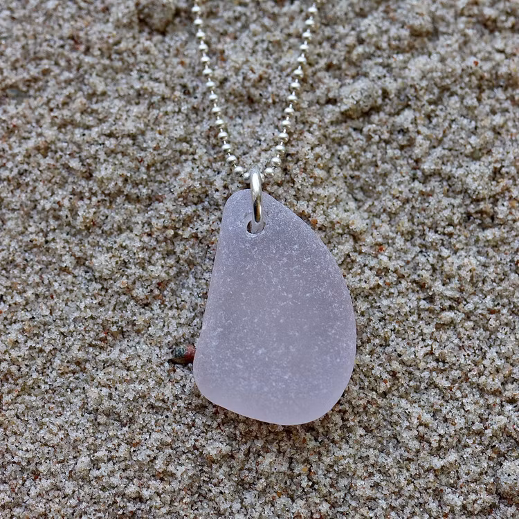 Havsglaset är samlat längs Skånes stränder och helt obearbetat, endast varsamt tvättat och borrat.