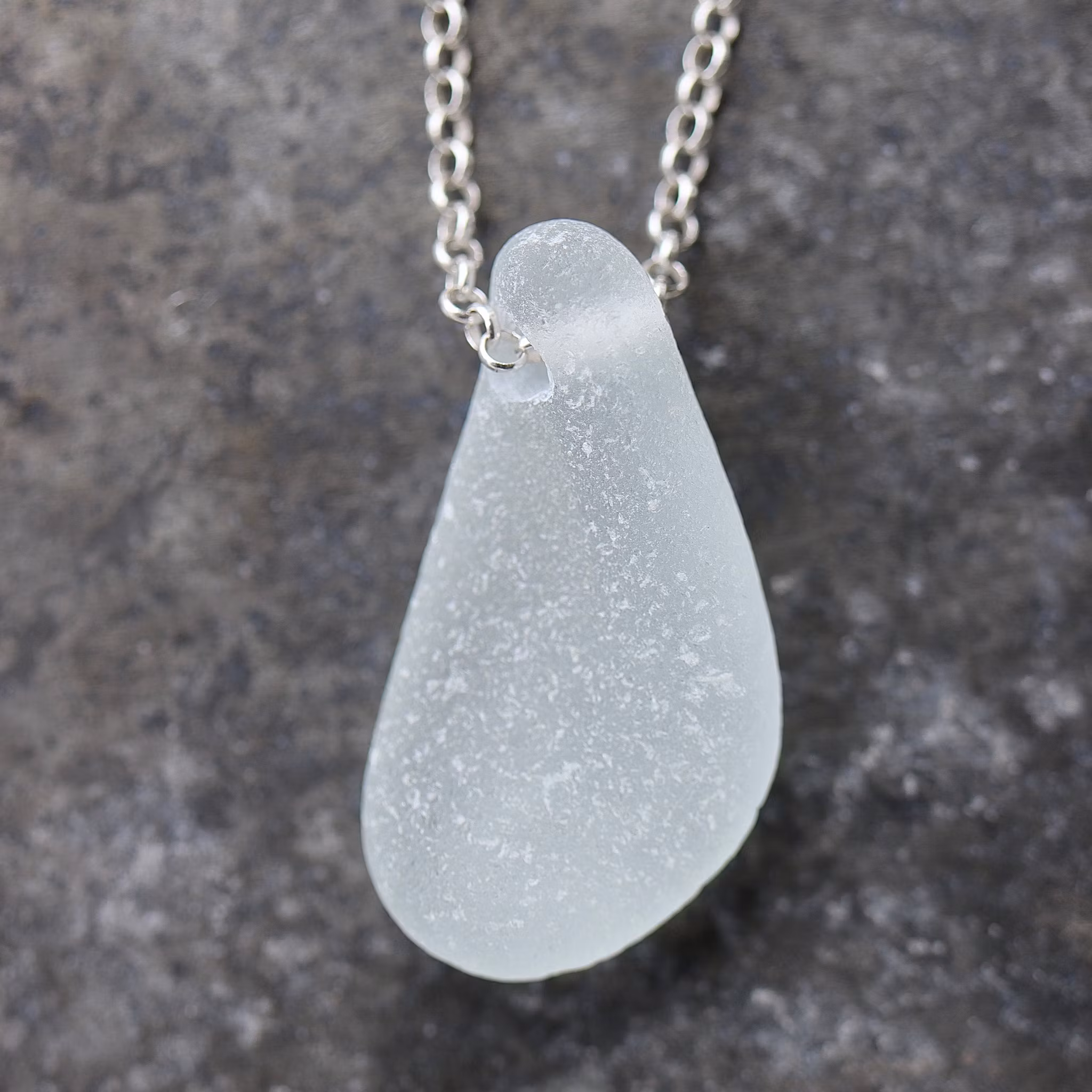 Havsglaset är samlat längs Skånes stränder och helt obearbetat, endast varsamt tvättat och borrat.