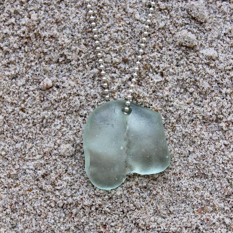 Havsglaset är samlat längs Skånes stränder och helt obearbetat, endast varsamt tvättat och borrat.