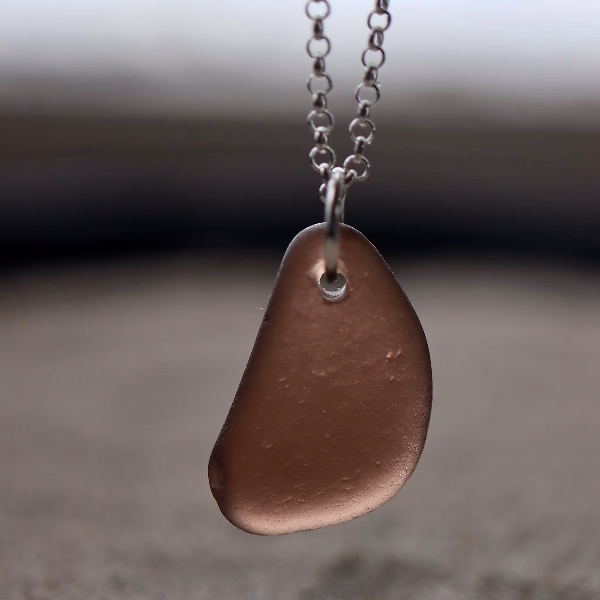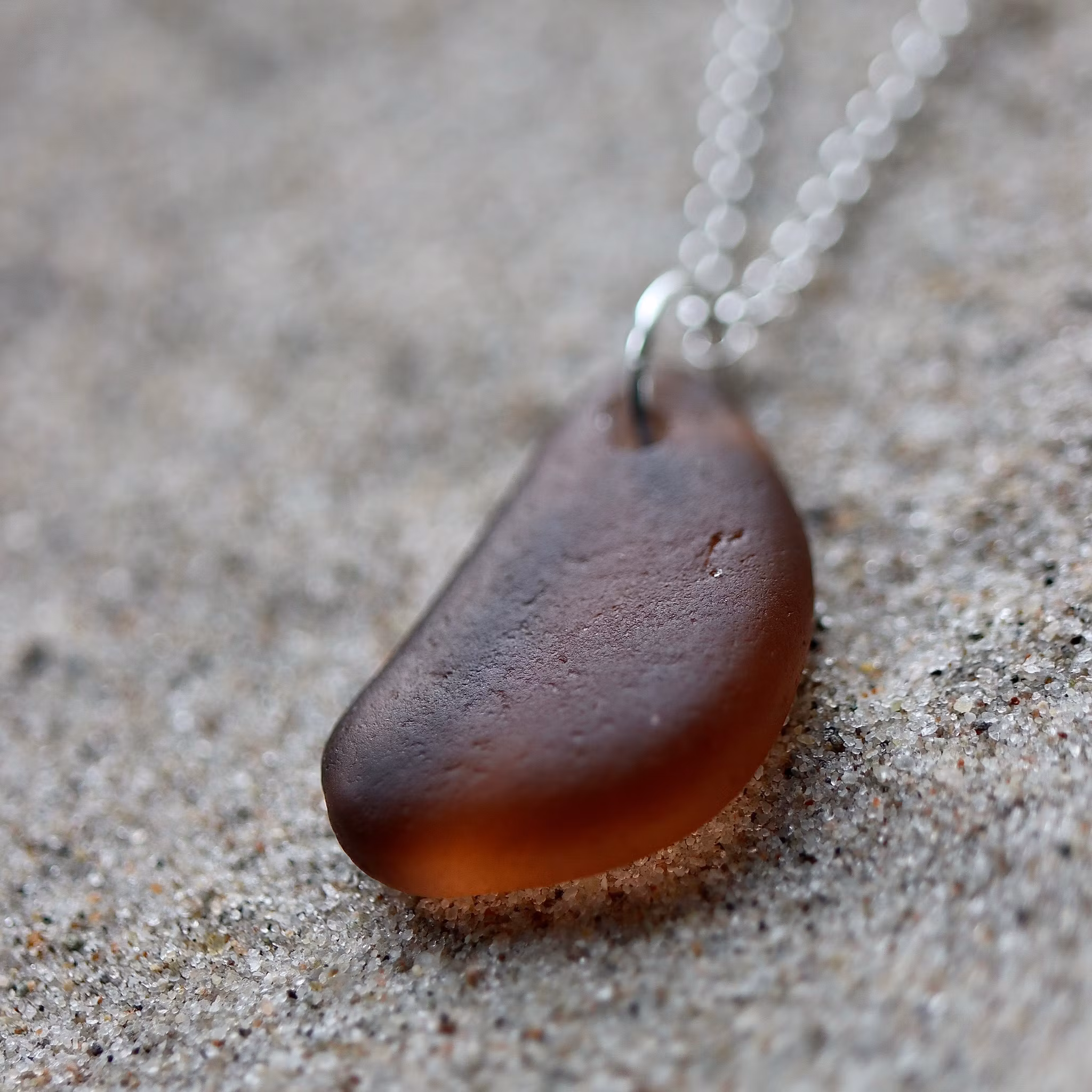 Havsglaset är samlat längs Skånes stränder och helt obearbetat, endast varsamt tvättat och borrat.