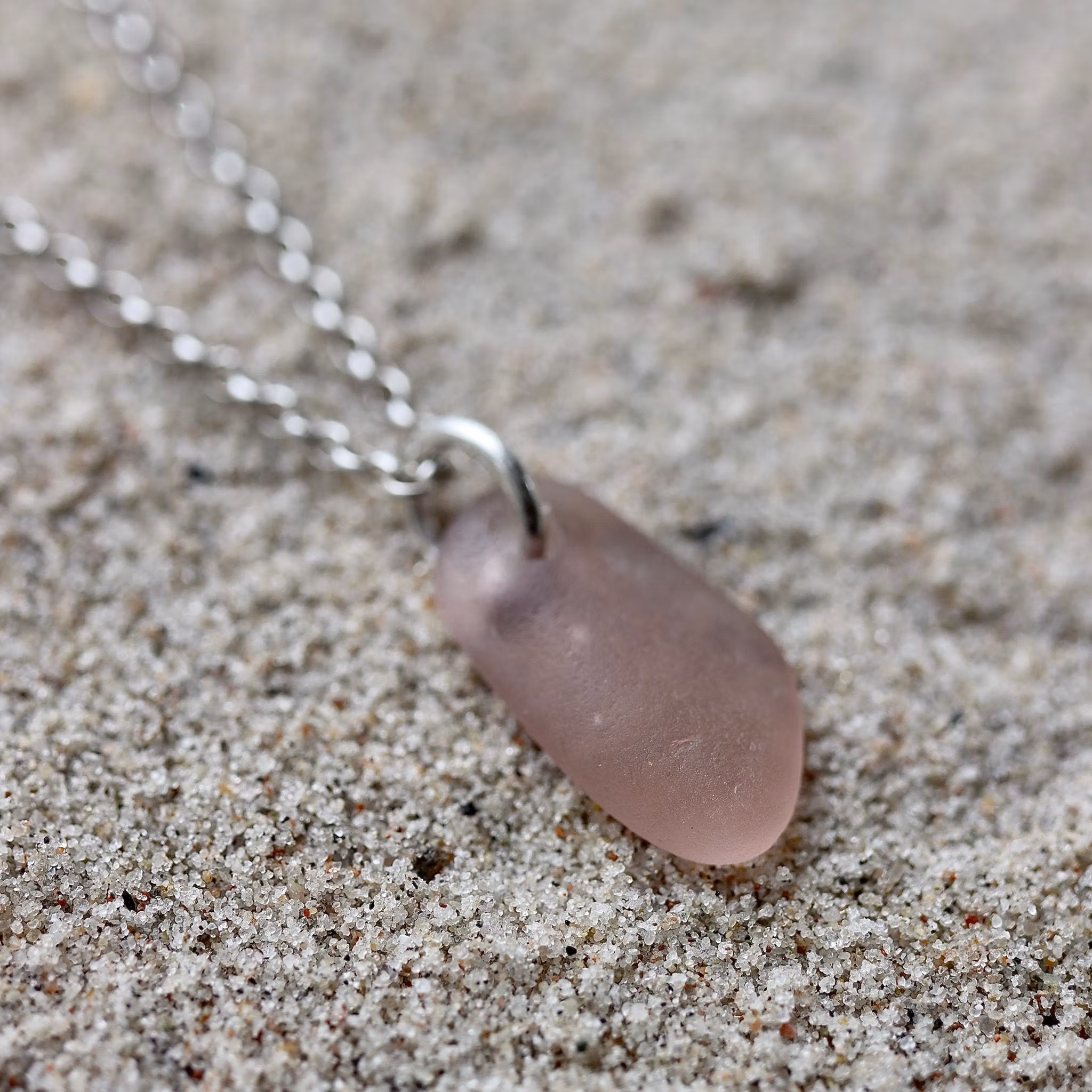 Halskedja av äkta silver, välj mellan 45, 50 och 60 cm, i låset sitter en plexitag "Havsglas" tillverkad i Sverige.