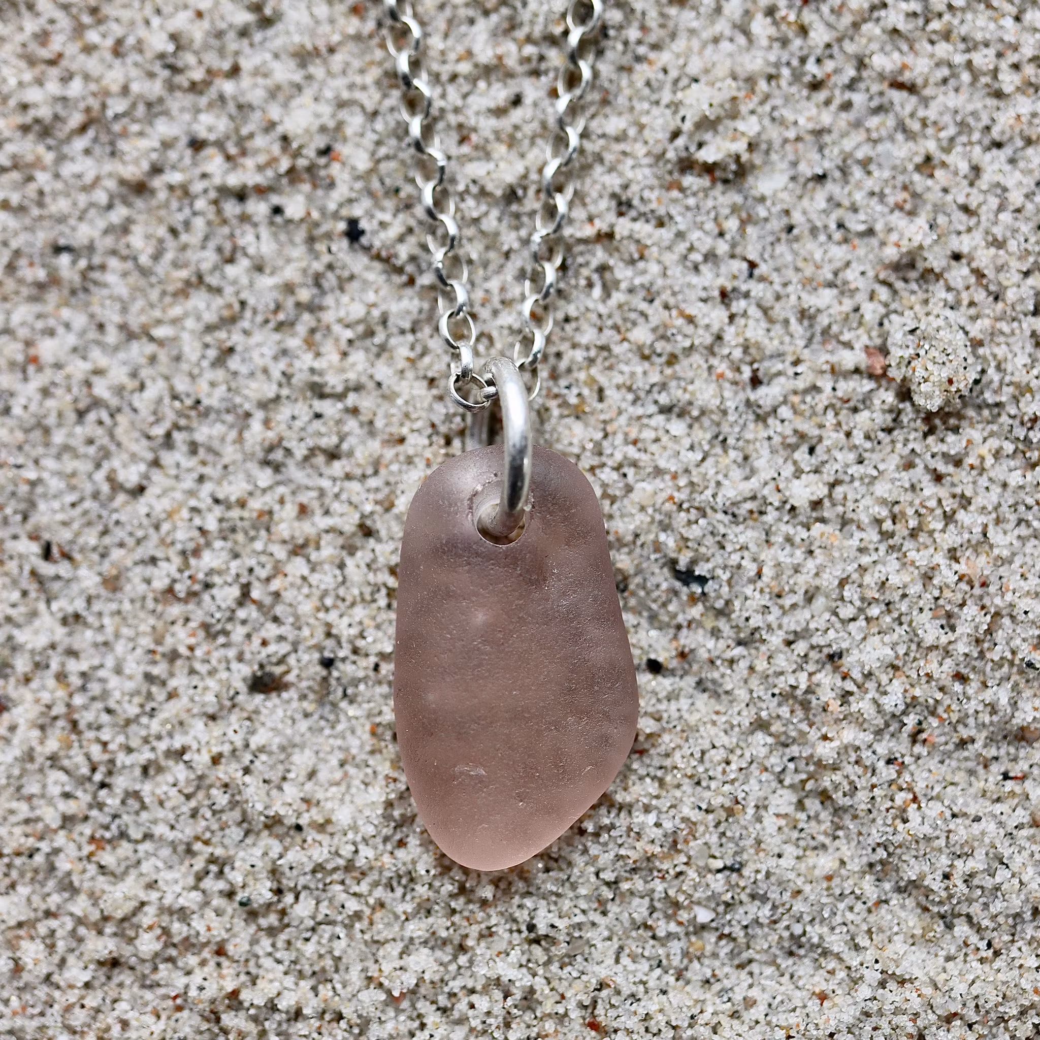 Havsglaset är samlat längs Skånes stränder och helt obearbetat, endast varsamt tvättat och borrat.