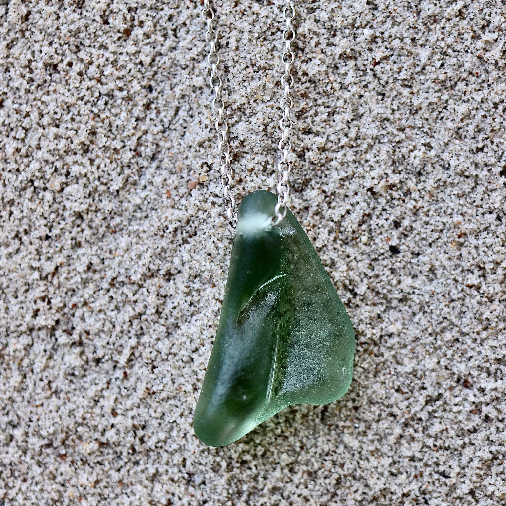 Havsglaset är samlat längs Skånes stränder och helt obearbetat, endast varsamt tvättat och borrat.