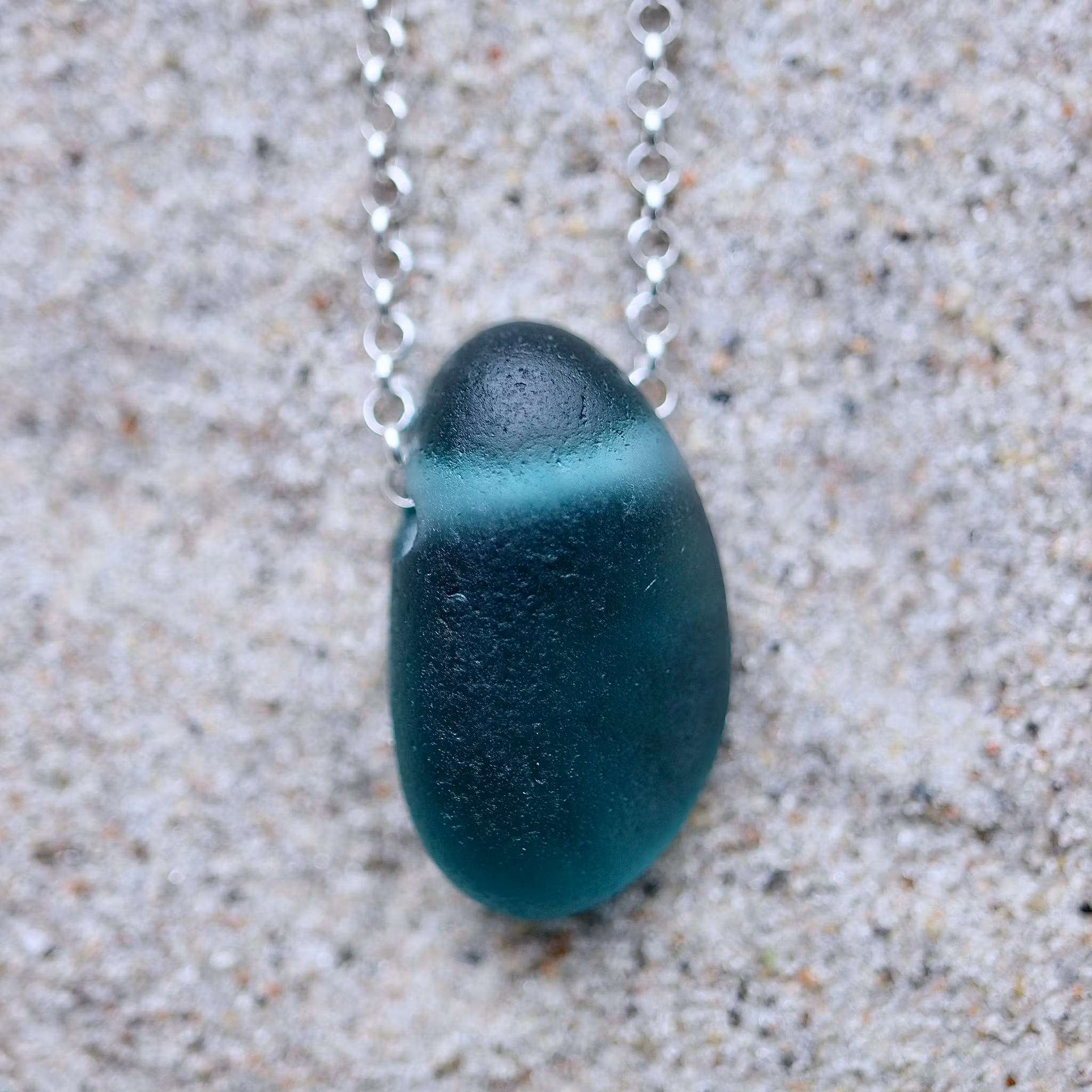 Halskedja av äkta silver, välj mellan 45, 50 och 60 cm, i låset sitter en plexitag "Havsglas" tillverkad i Sverige.