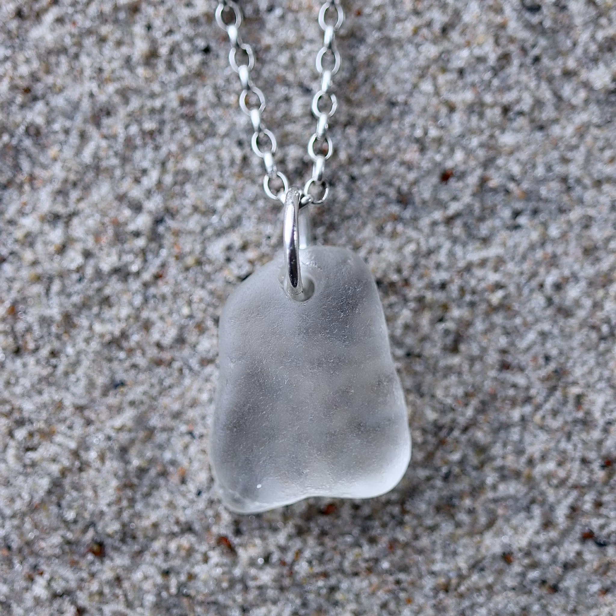 Halskedja av äkta silver, välj mellan 45, 50 och 60 cm, i låset sitter en plexitag "Havsglas" tillverkad i Sverige.