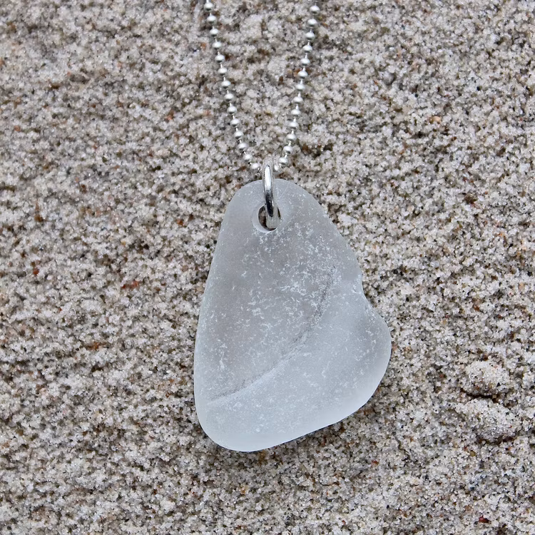 Havsglaset är samlat längs Skånes stränder och helt obearbetat, endast varsamt tvättat och borrat.