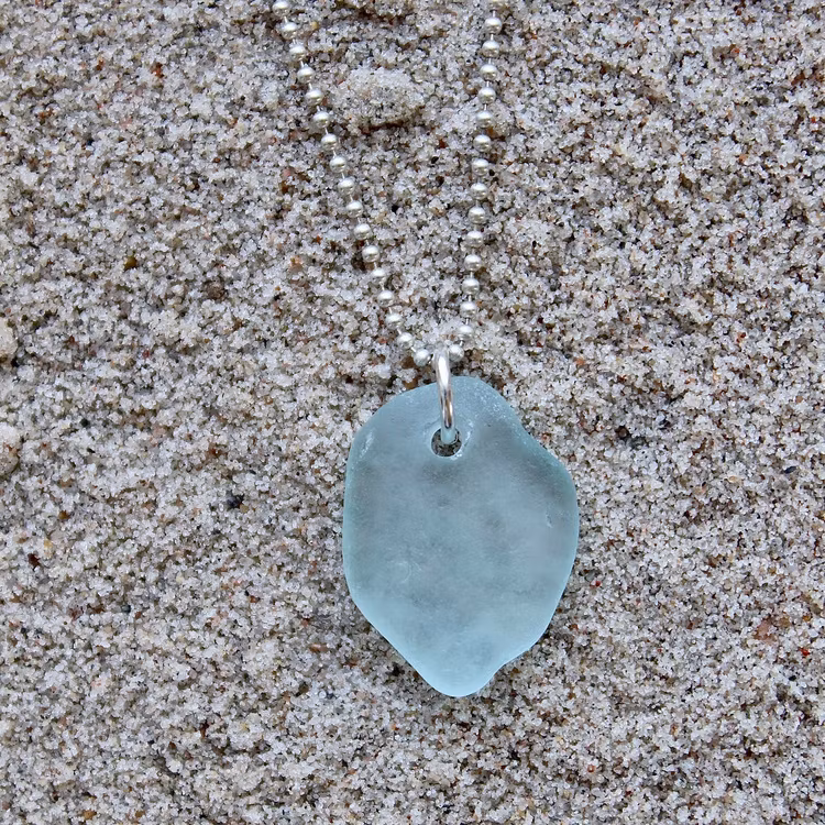 Havsglaset är samlat längs Skånes stränder och helt obearbetat, endast varsamt tvättat och borrat.