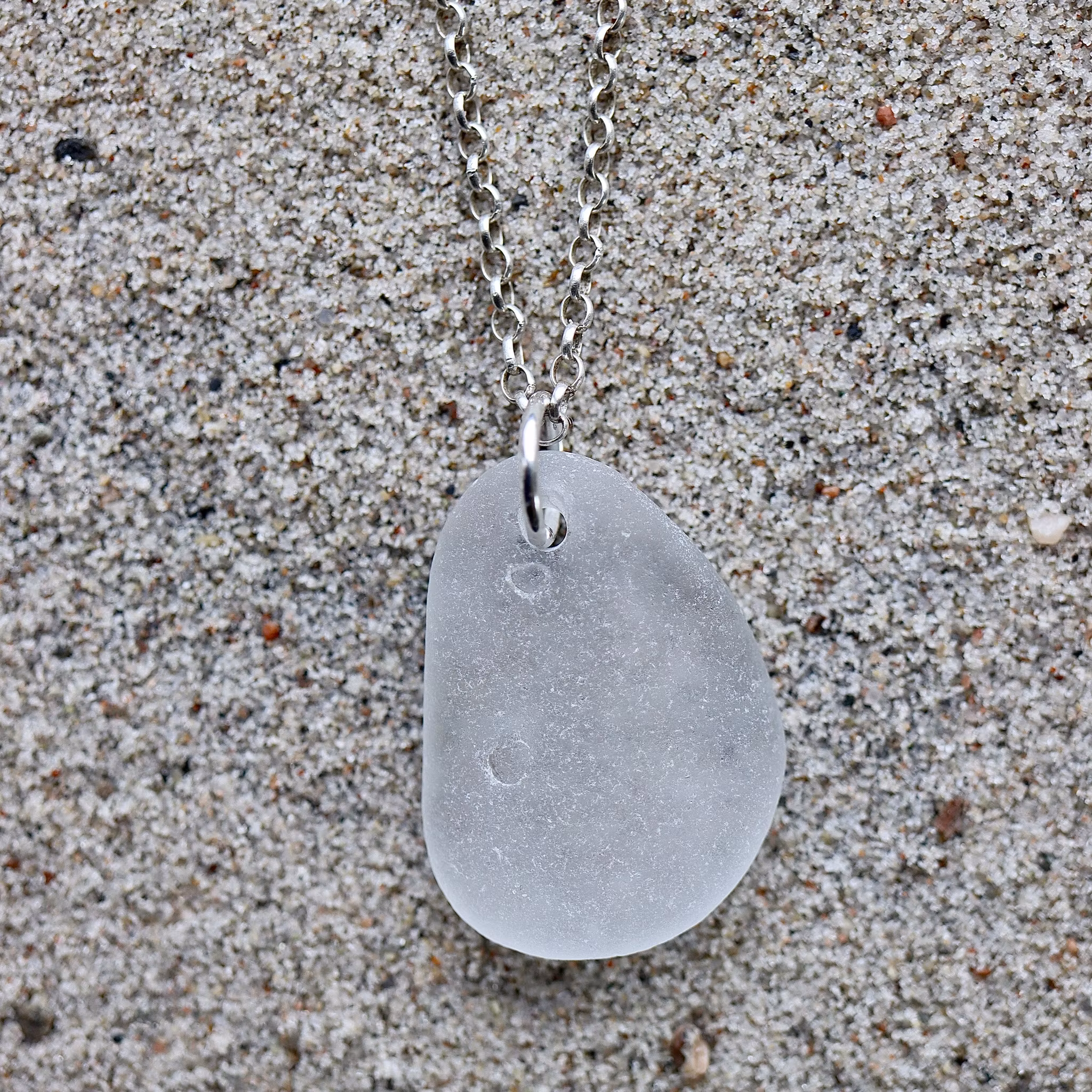 Halskedja av äkta silver, välj mellan 45, 50 och 60 cm, i låset sitter en plexitag "Havsglas" tillverkad i Sverige.