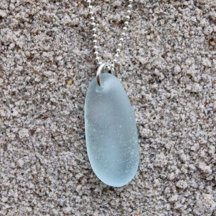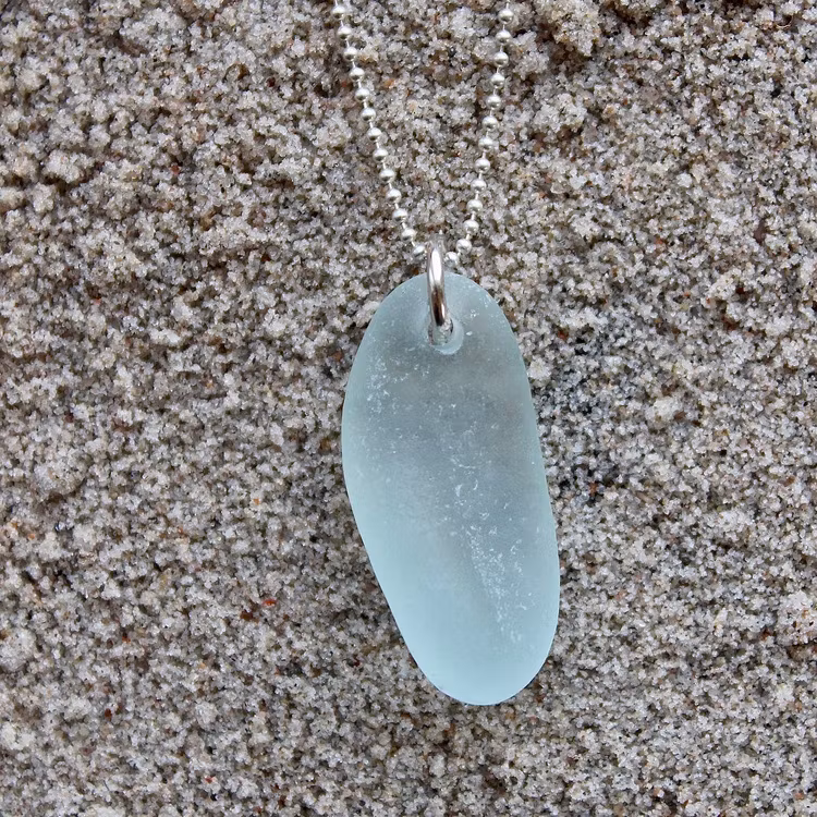 Havsglaset är samlat längs Skånes stränder och helt obearbetat, endast varsamt tvättat och borrat.