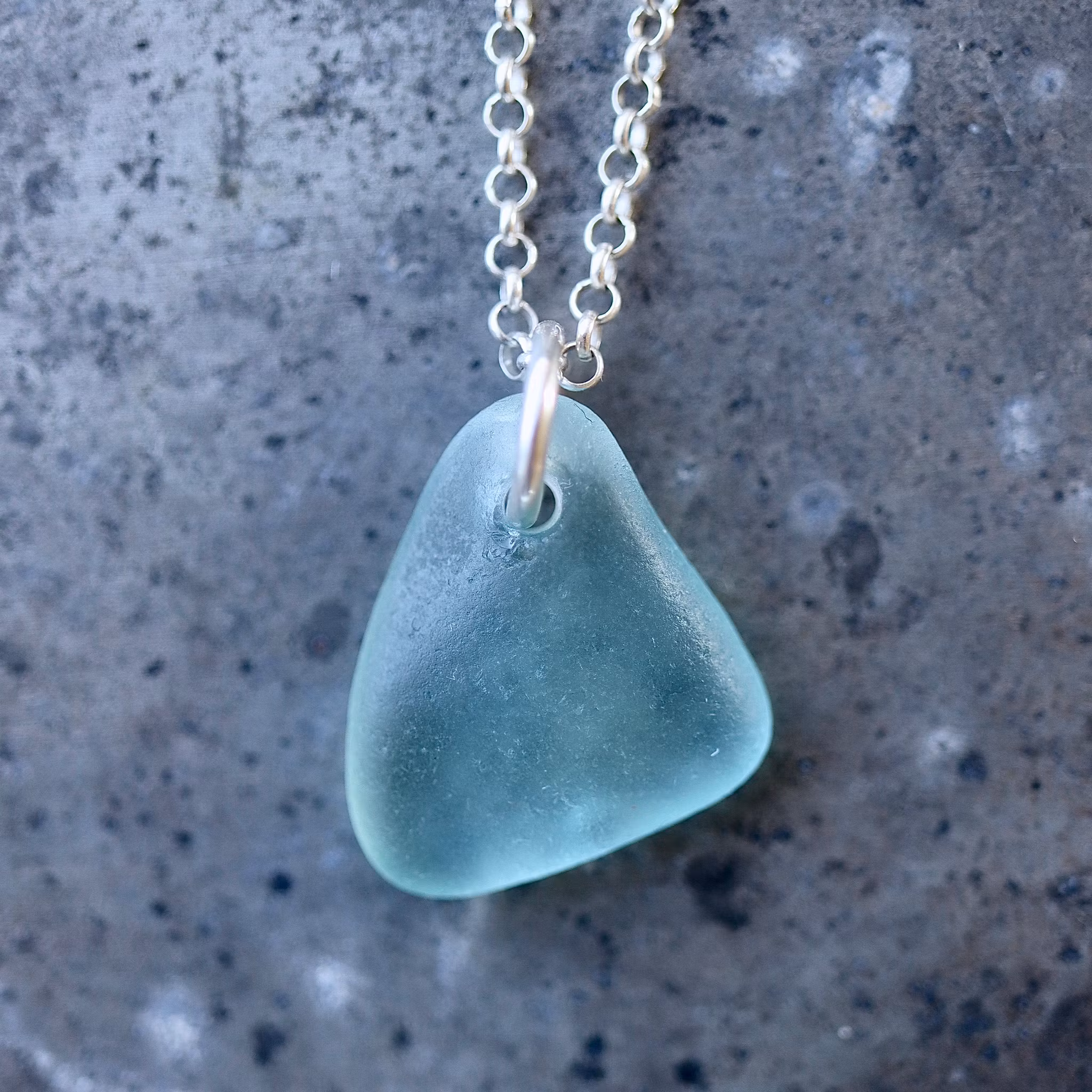 Havsglaset är samlat längs Skånes stränder och helt obearbetat, endast varsamt tvättat och borrat.