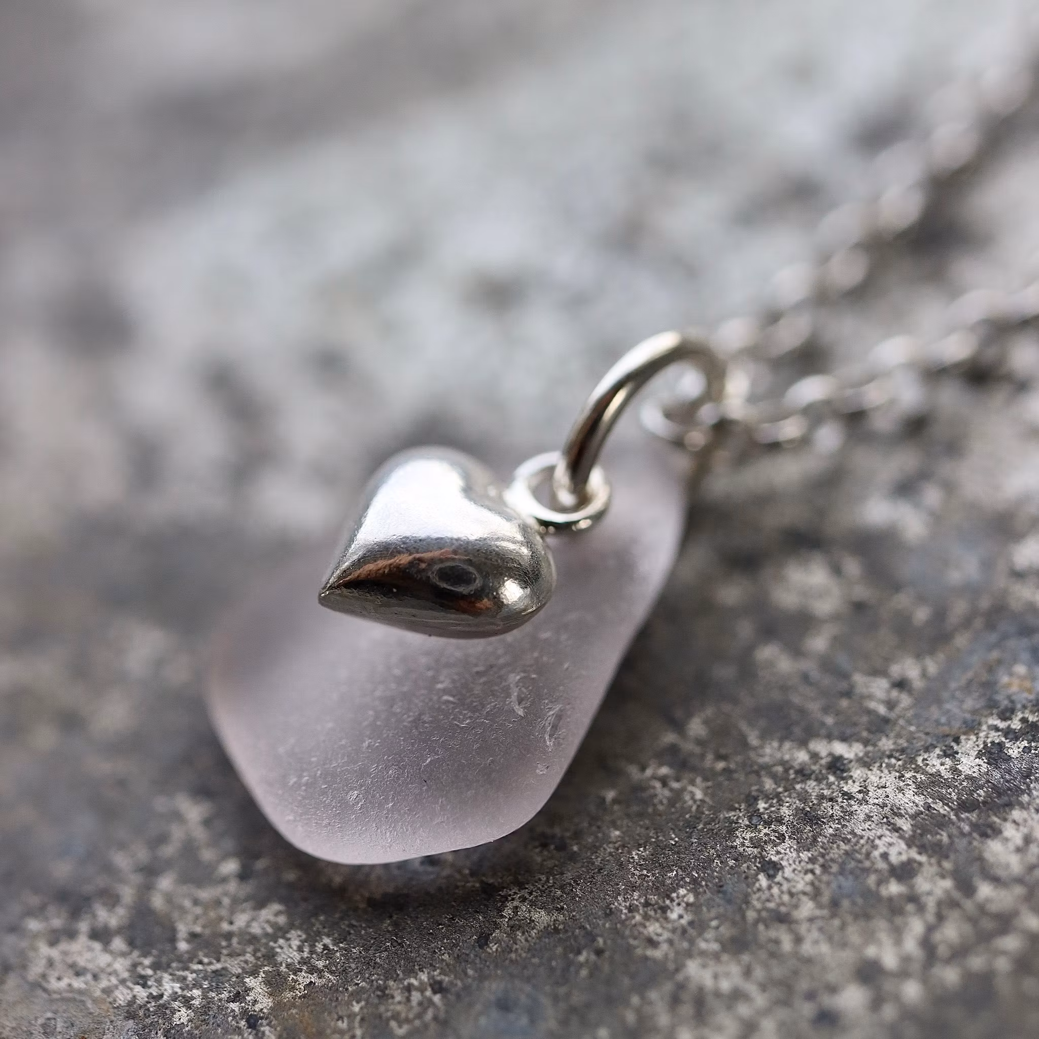 Havsglaset är samlat längs Skånes stränder och helt obearbetat, endast varsamt tvättat och borrat.