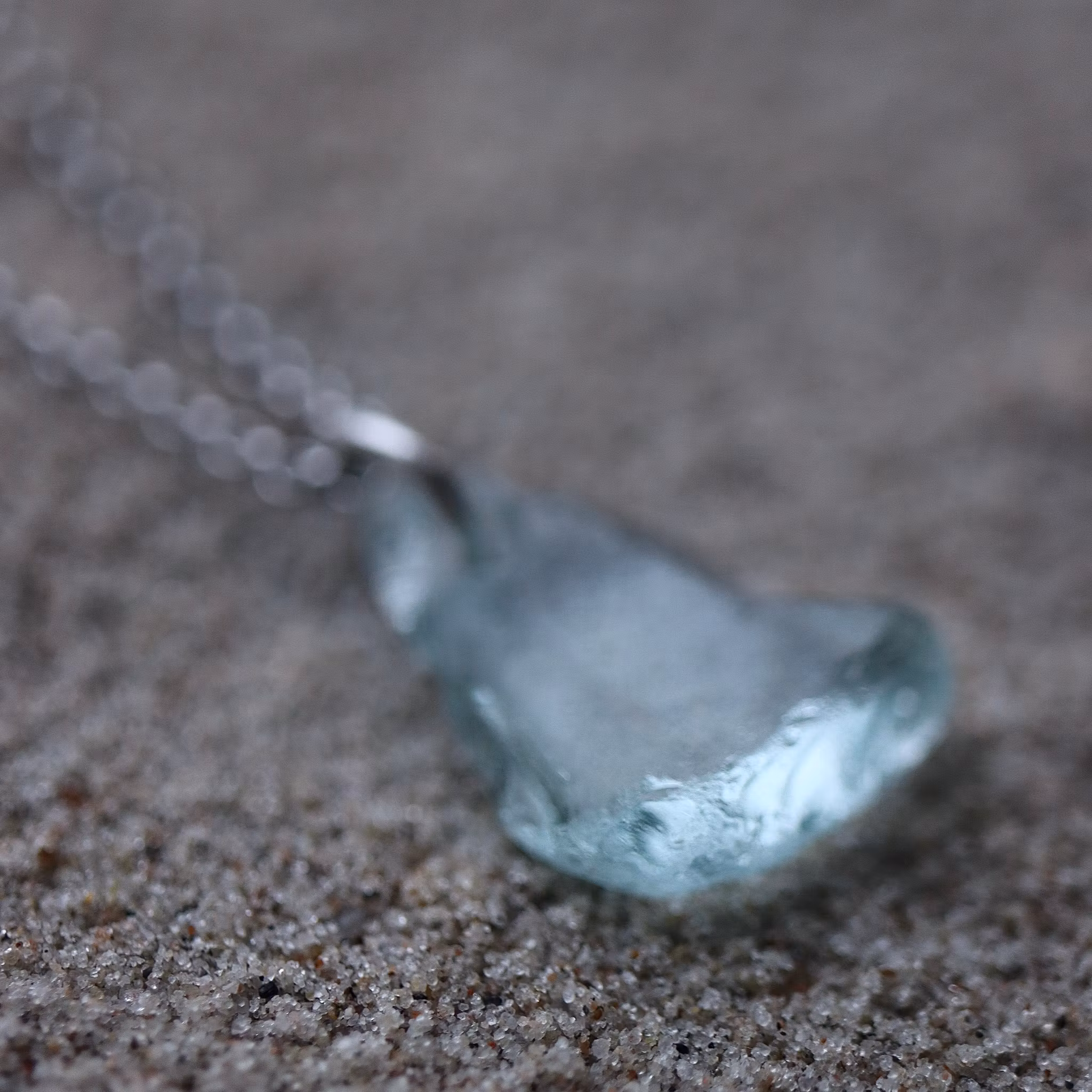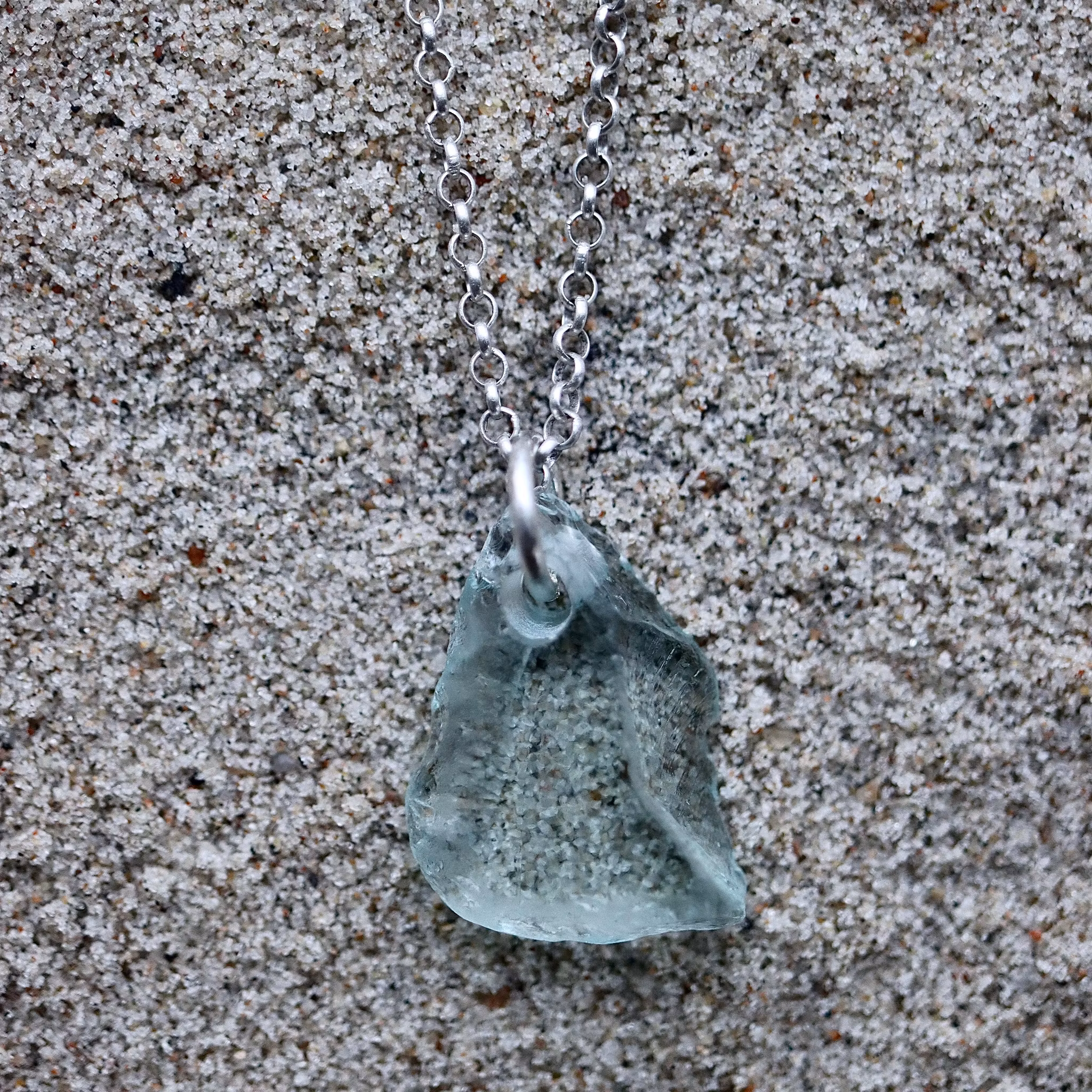 Havsglaset är samlat längs Skånes stränder och helt obearbetat, endast varsamt tvättat och borrat.