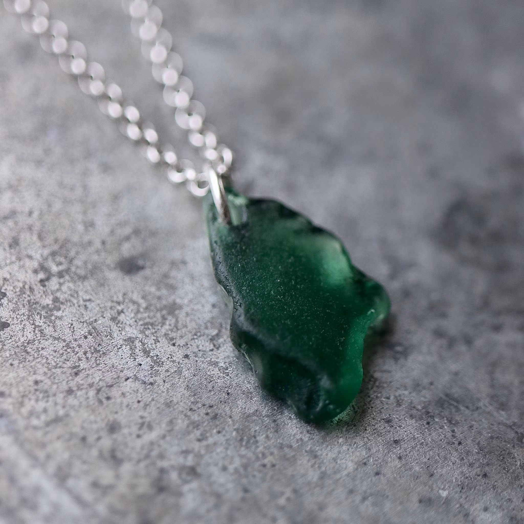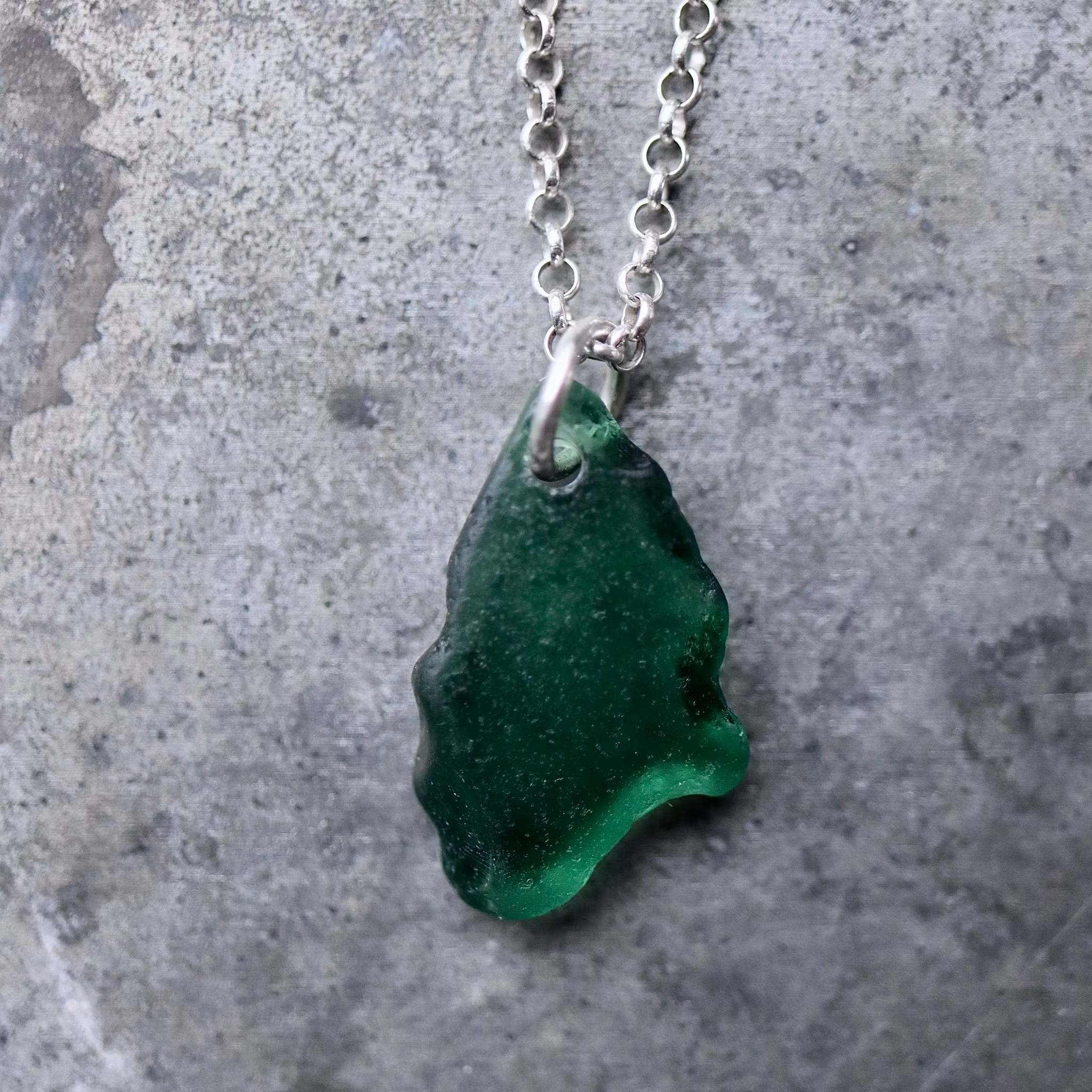 Havsglaset är samlat längs Skånes stränder och helt obearbetat, endast varsamt tvättat och borrat.