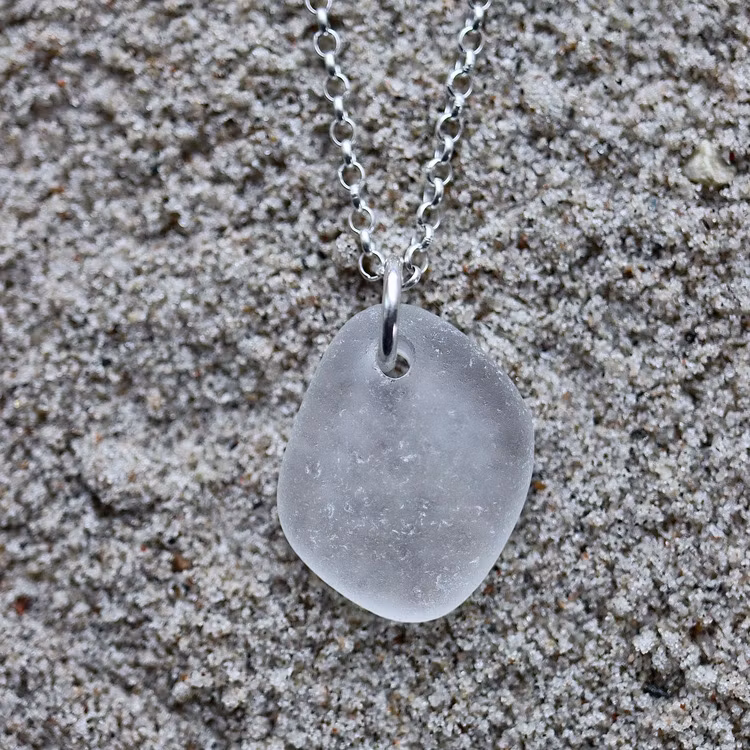 Havsglaset är samlat längs Skånes stränder och helt obearbetat, endast varsamt tvättat och borrat.